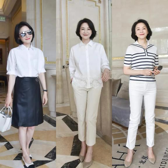小白褲也不是年輕女孩的專屬,只要選擇適合自己的款式,奔六的女人也可以美的清爽醒目。精緻感襯衫、可以配蕾絲、領結的修飾,大方又洋氣。
