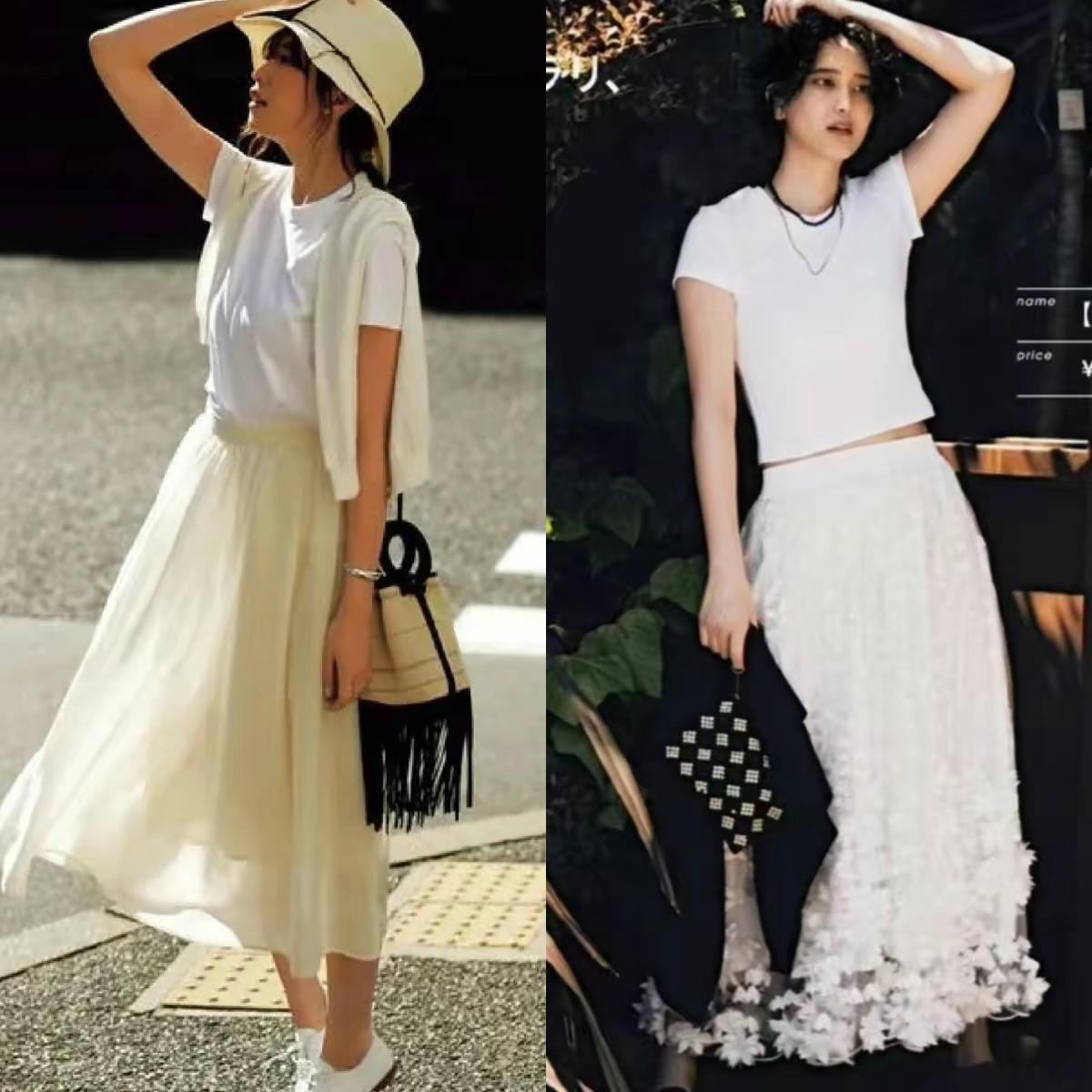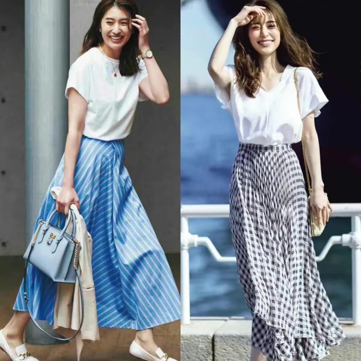 春夏季節的白T恤,可以搭配哪些款式的半身裙?