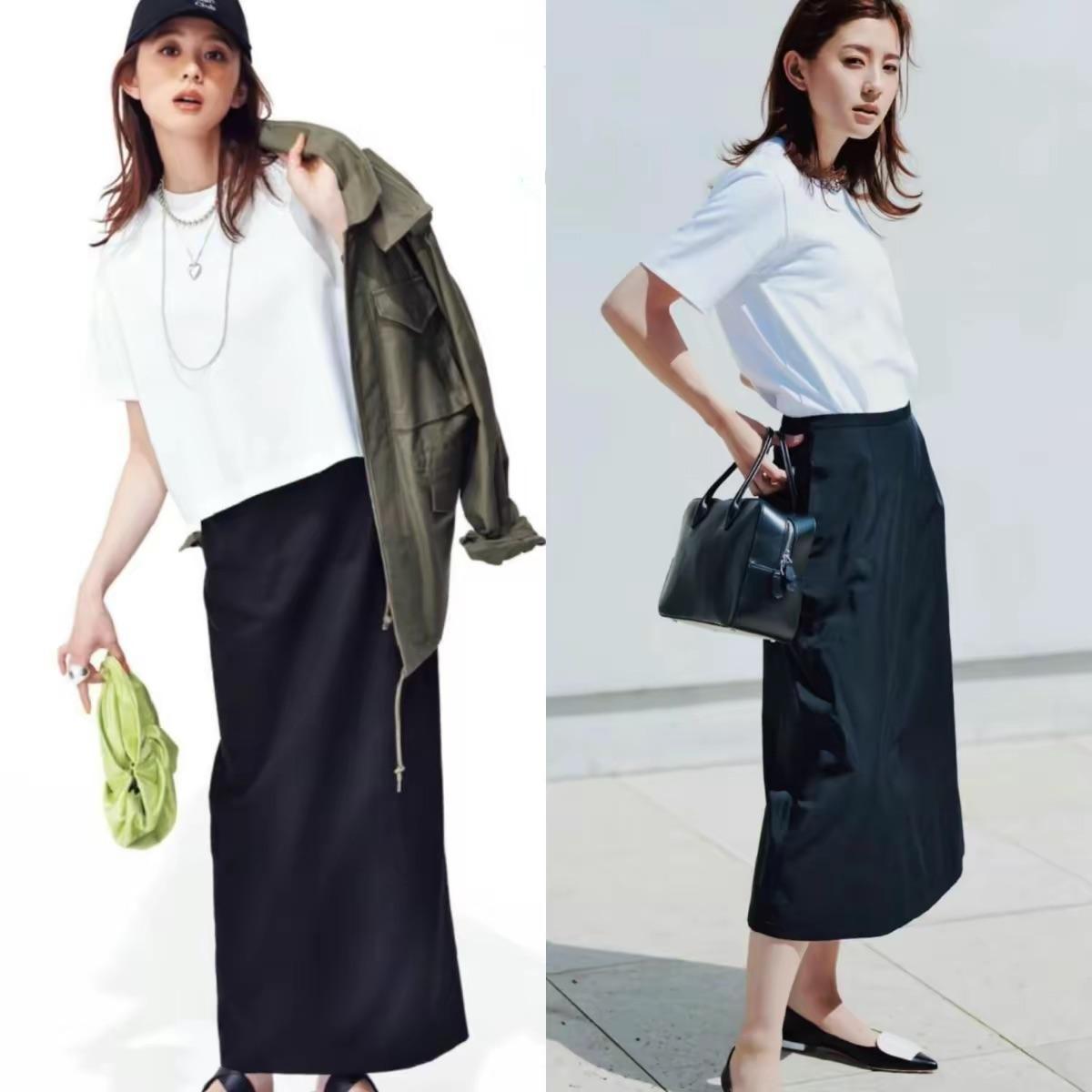 40+的女人,如果想要通勤穿搭的話,可以嘗試百搭不出錯的白T恤+直筒半身裙。清爽的白色T恤,配上高級的黑色直筒半身裙,優雅又體面。