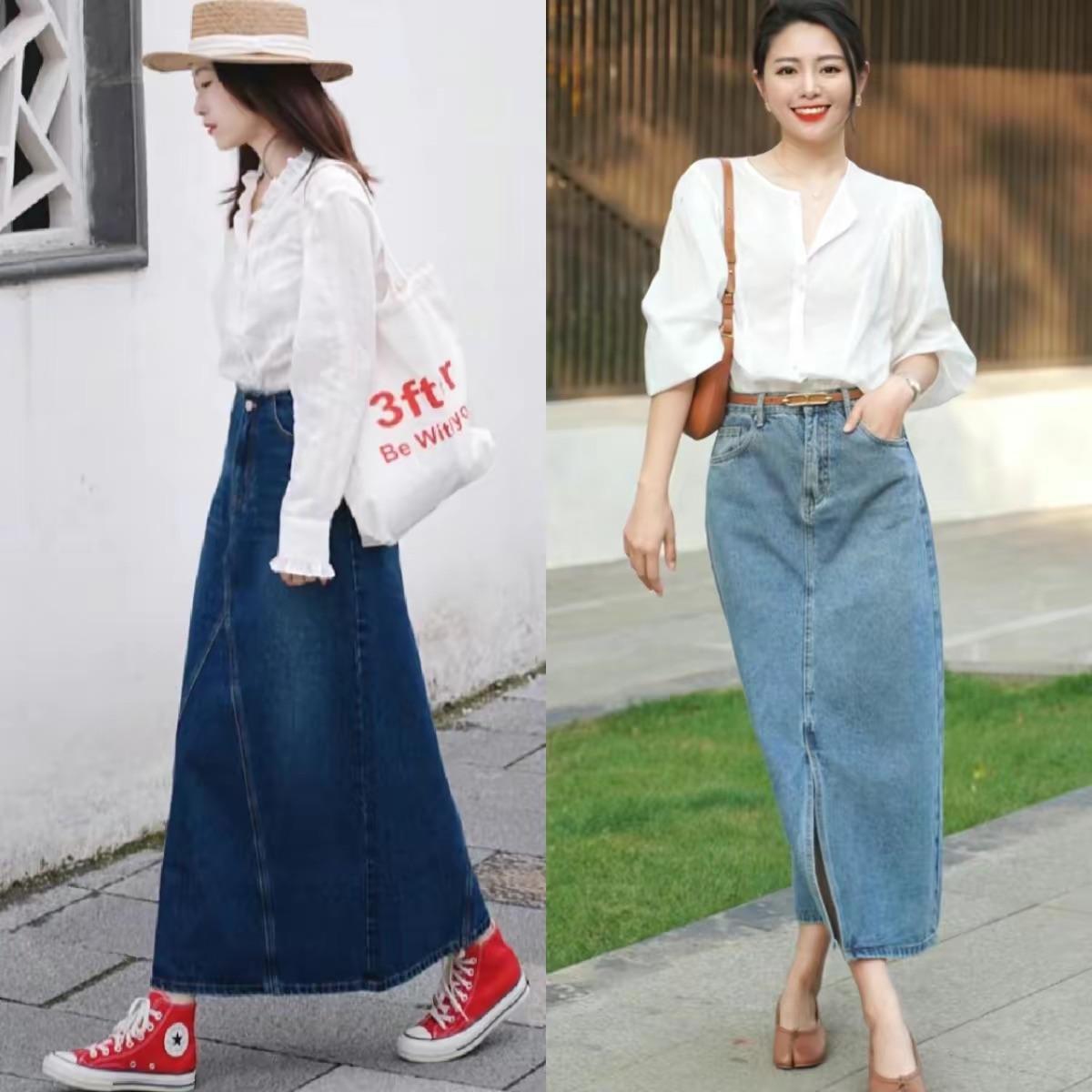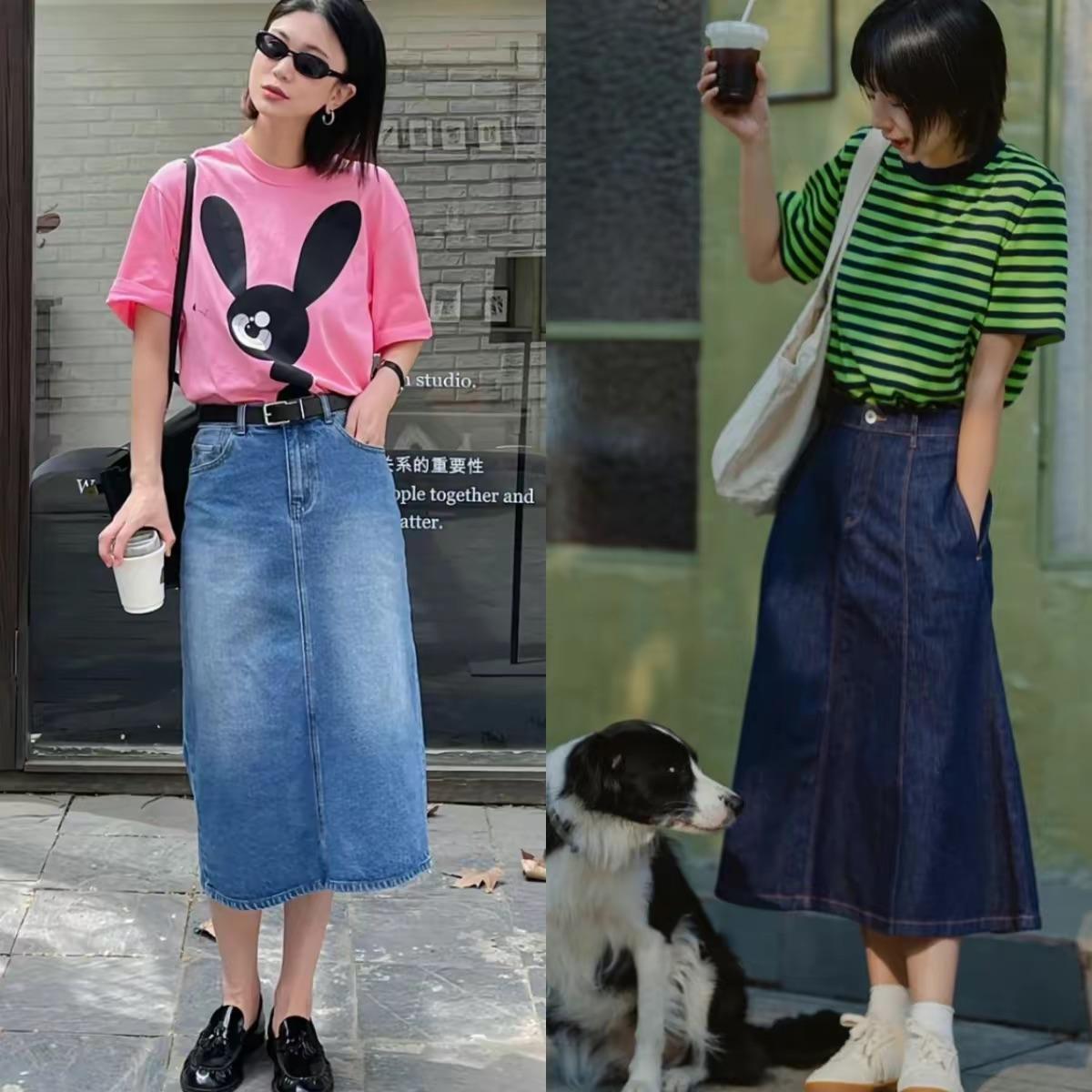 春夏流行“牛仔半身裙”,搭襯衫文藝、配T恤大方,也太好穿了吧