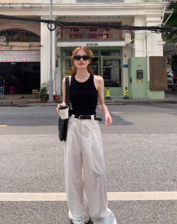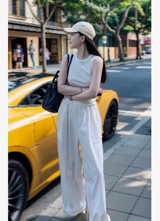 白褲子與背心的搭配也是比較多變的,你可以選擇一雙簡單的帆布鞋、涼鞋,就可以營造出休閒的日常風,增加一些配飾點綴,如一頂帽子、一條絲巾,或一個時尚的包包,都能爲你整個造型增添不少魅力。