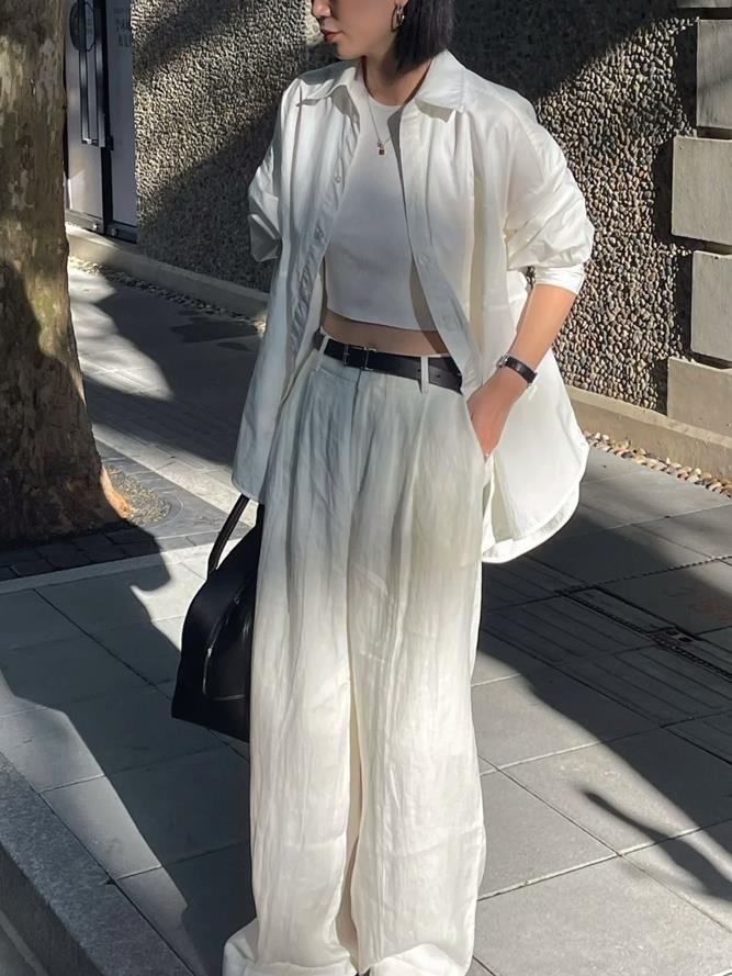 白褲子的魅力在於其簡潔的色調,它能夠帶給人一種清新脫俗的既視感,不管是選擇深色上衣,還是明亮的顏色,白褲子都可以輕鬆駕馭。