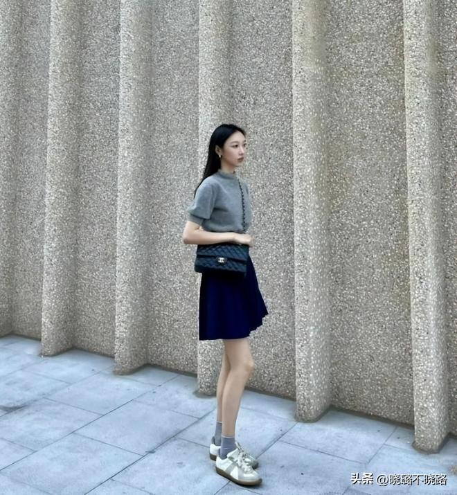 穿上時髦的短裙,可以完美展現出腿部的曲線之美,同時通過延伸感營造出更加纖長的視覺效果。搭配尖頭款式的德訓鞋,不僅可以使腿部線條看起來更加修長流暢,還能爲整體造型增添一絲精緻和優雅,提升了整體裝扮的時尚度。