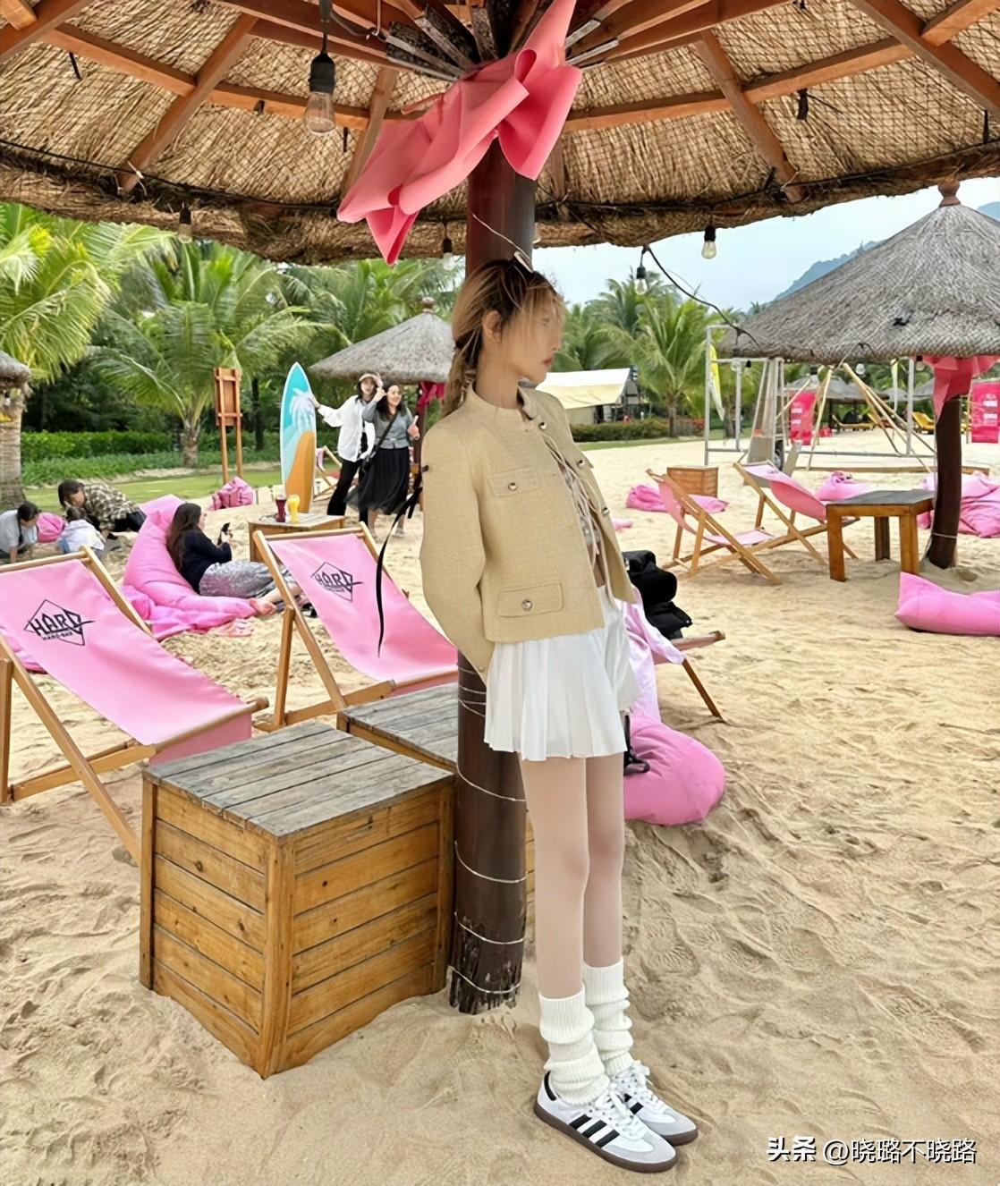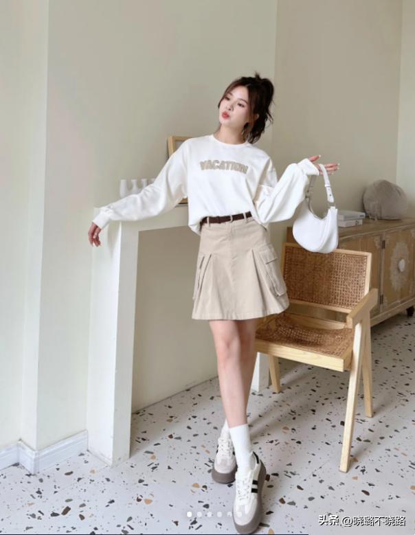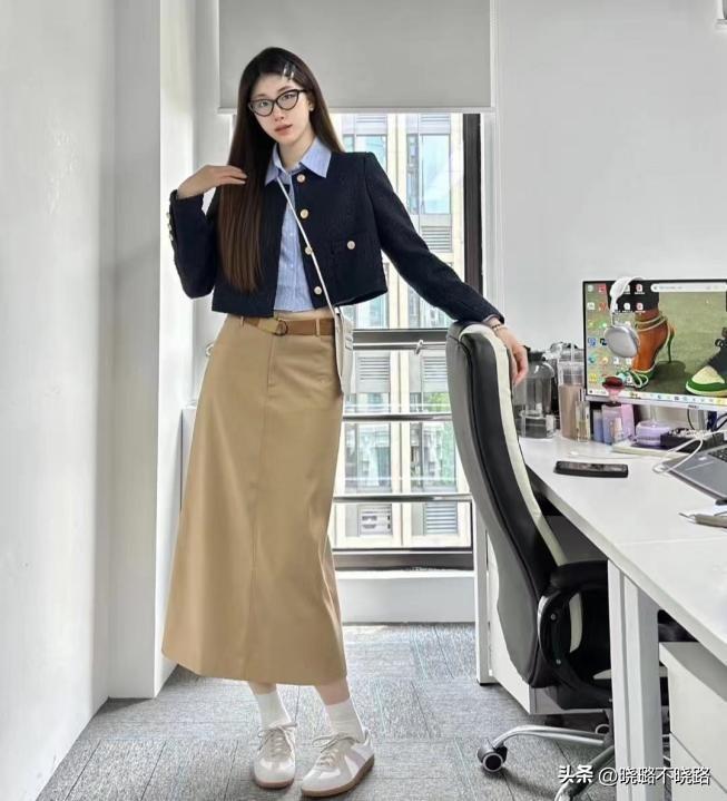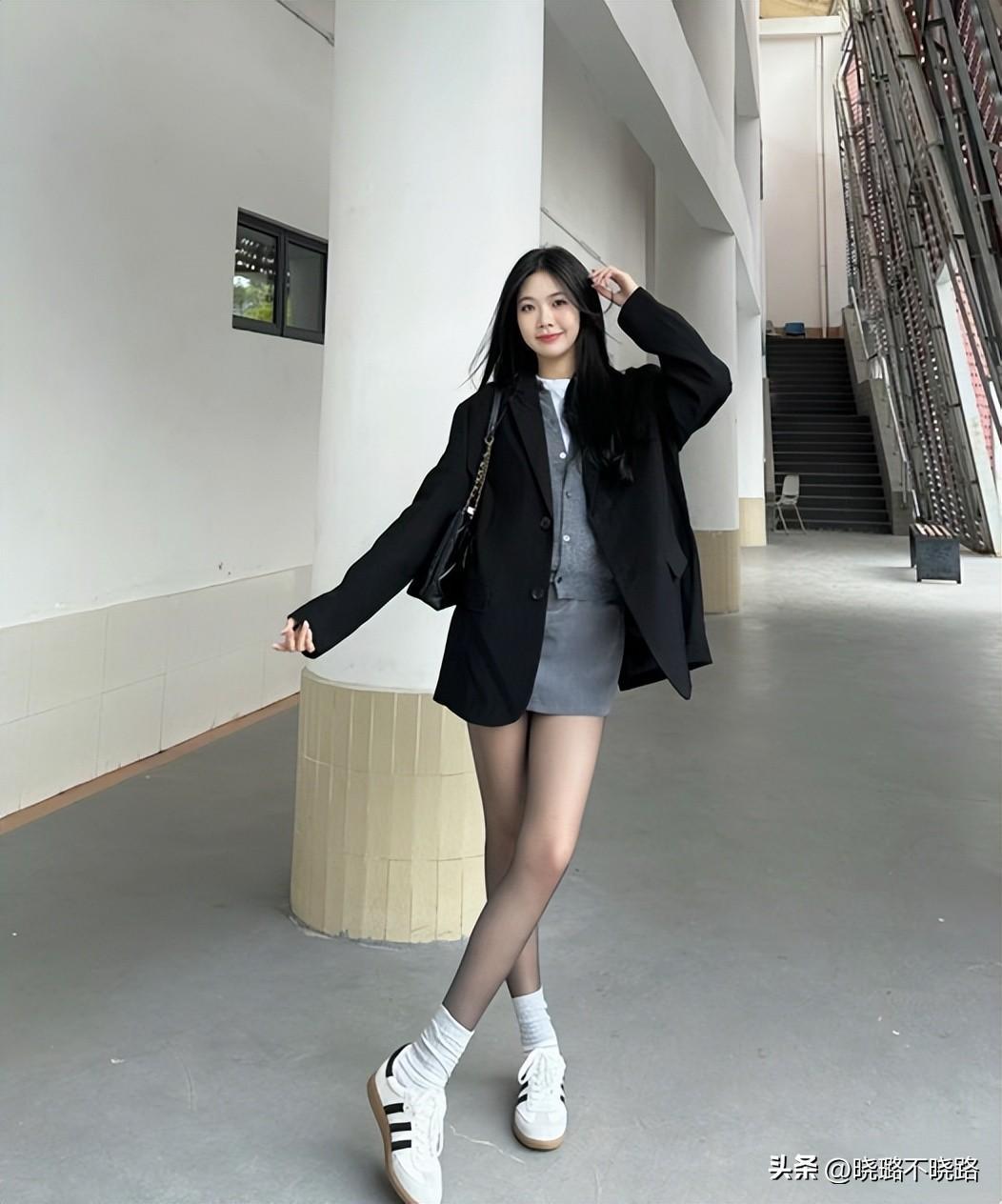 短款外套能讓整體造型更加清爽利落,展現出時尚感十足的一面;而短裙則展露雙腿線條,突顯纖細身姿,使整體穿着更加青春動感。再搭配上德訓鞋,可以爲整體造型錦上添花,讓你煥發自信、光彩照人。這套組合是小個子女生打造時尚減齡look的絕佳選擇,還能顯出俏皮可愛的少女氣息。