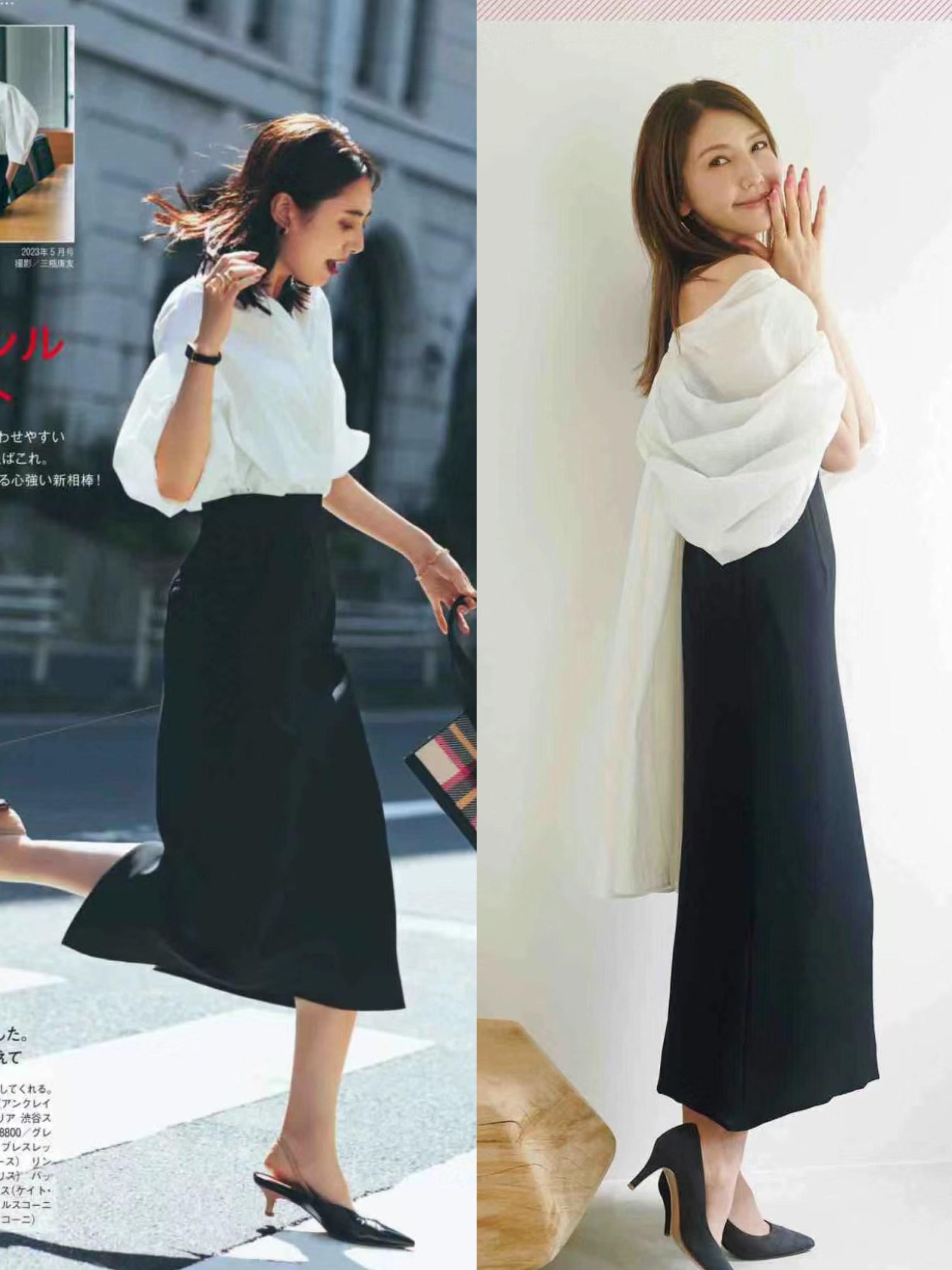 春夏之交,服裝的款式更加新穎、款式也更加多樣,泡泡袖、捏褶裝飾、露膚點綴,看似有點張揚的元素,遇到黑色半身裙在醒目閃耀的同時、也不會顯得浮誇,更顯高級雅緻。