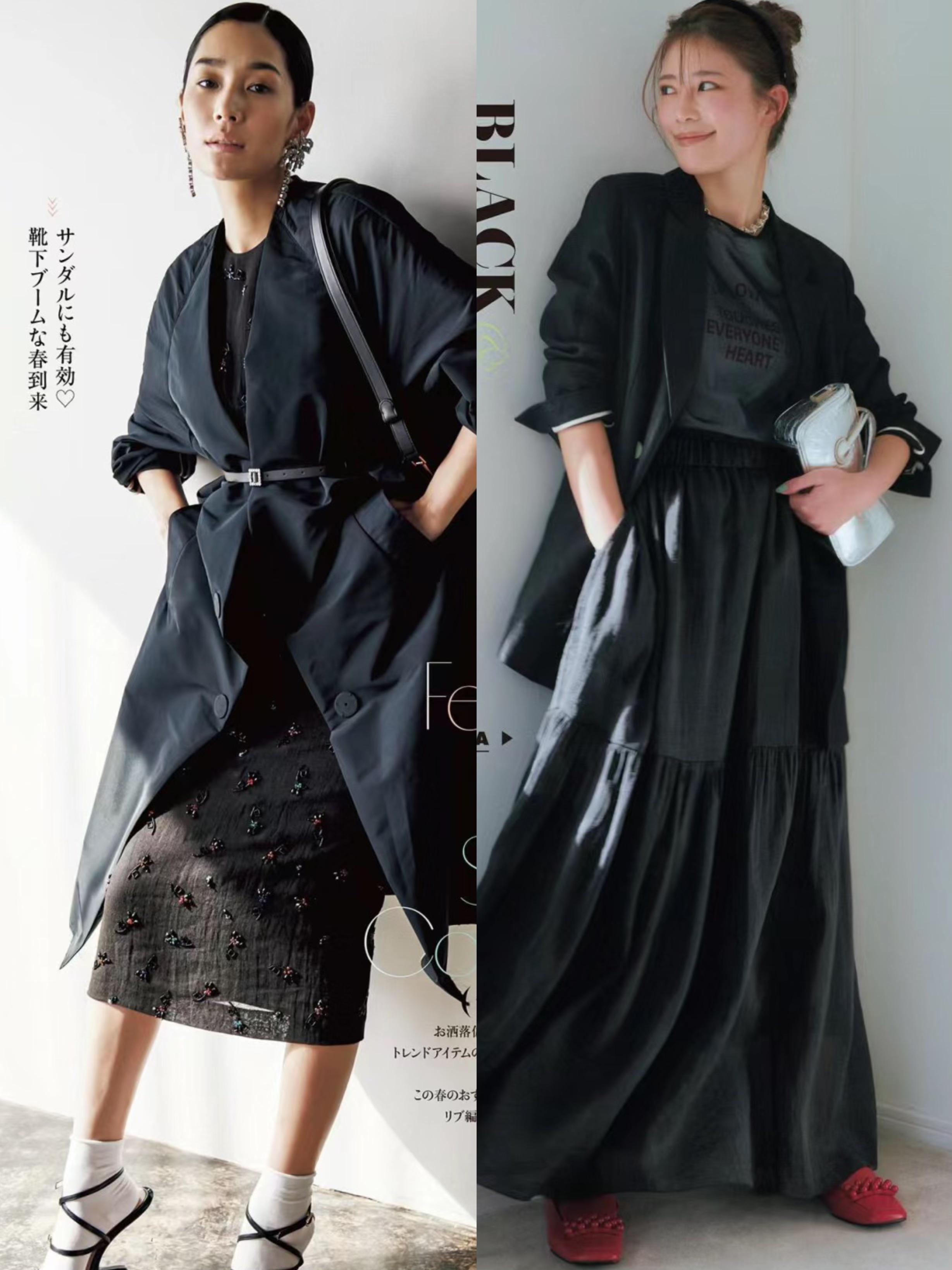 對於身材包裹性更強的黑色直筒半身裙,就是當下時髦精的必選單品。高腰的款式、適當修身的剪裁、配上比較流暢的線條、以及垂順的面料,呈現低調的高級。
