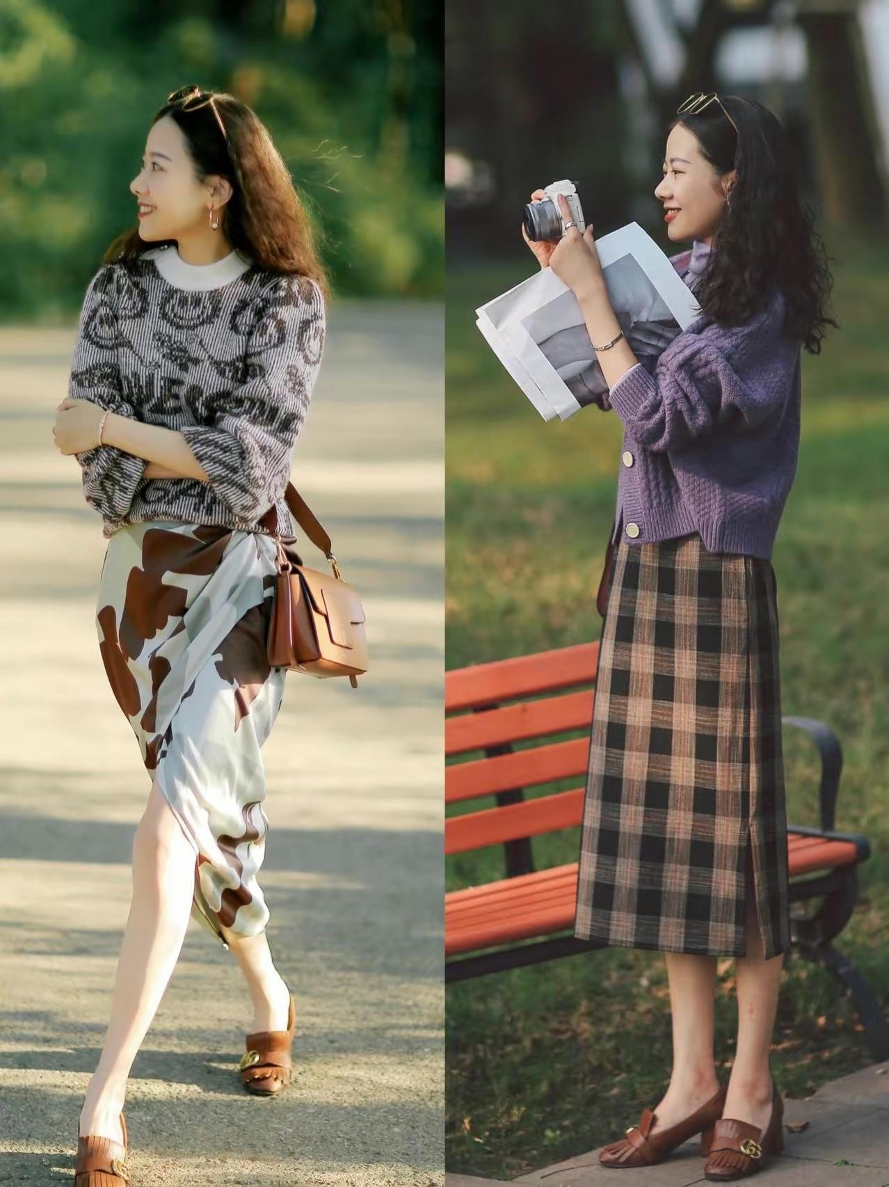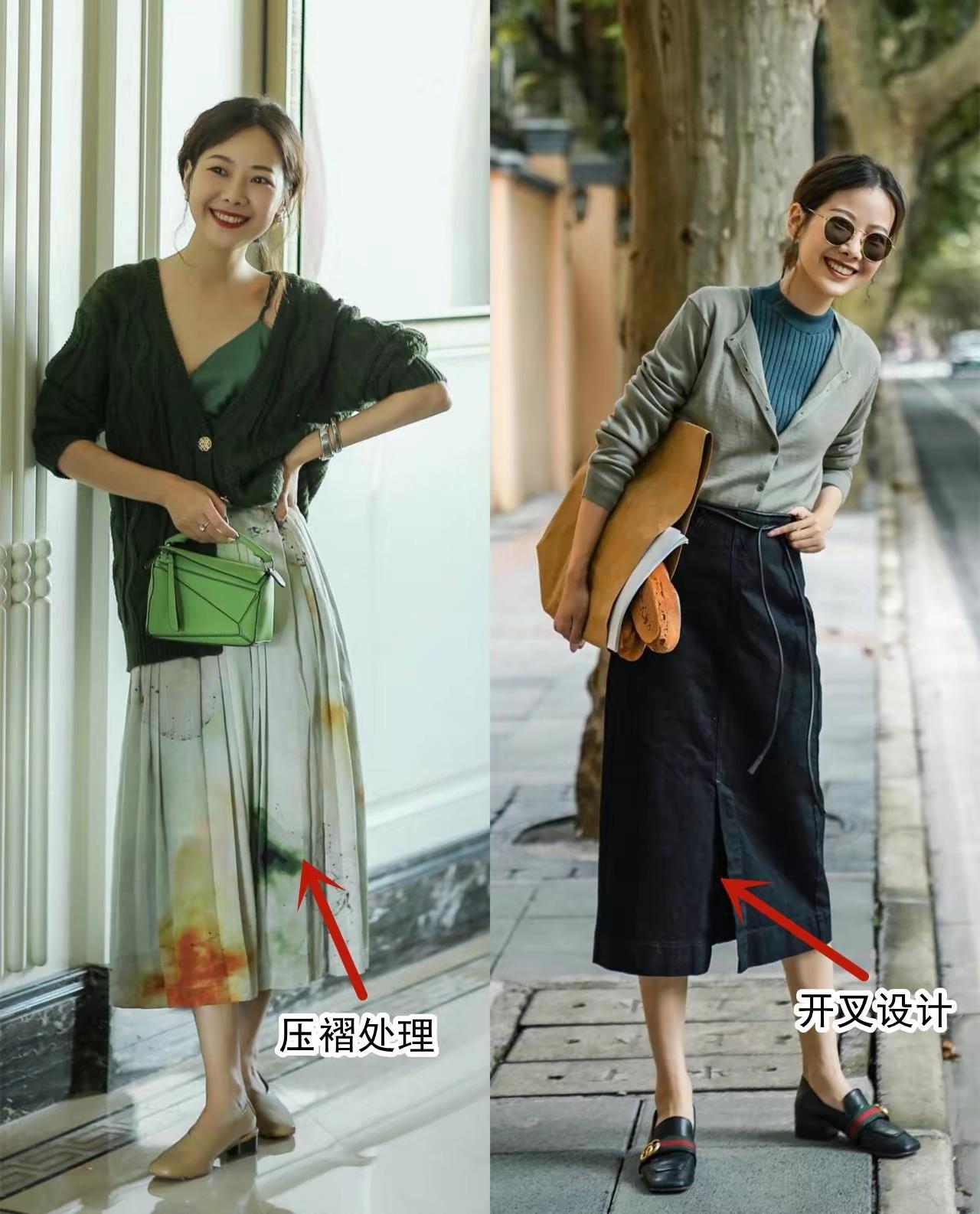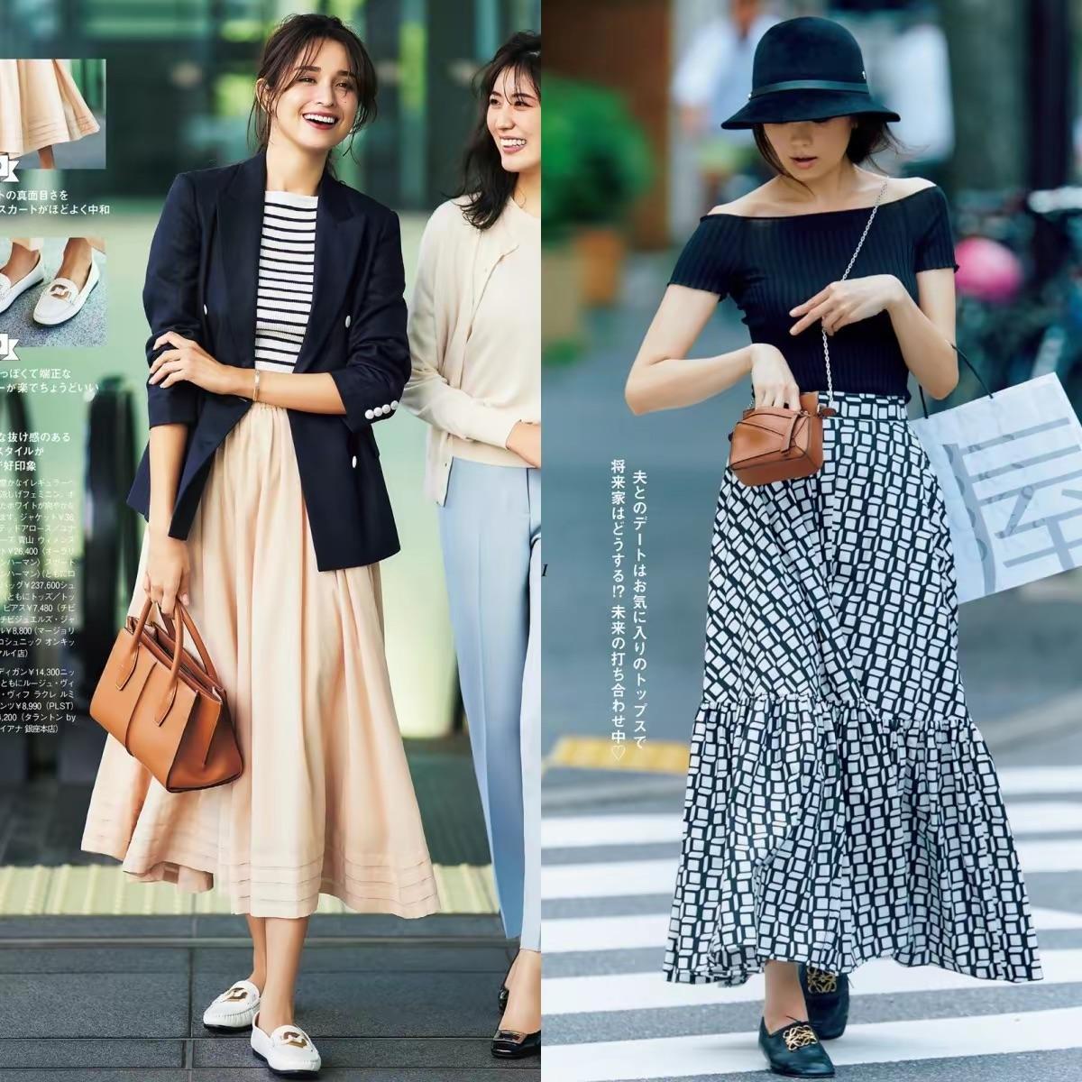 視覺上的繁簡組合,不僅能夠避免單調或者邋遢,更多了高級的品味。不管是開叉的半身裙、還是印染效果+壓褶處理的半身裙,都可以配樂福鞋來穿着。