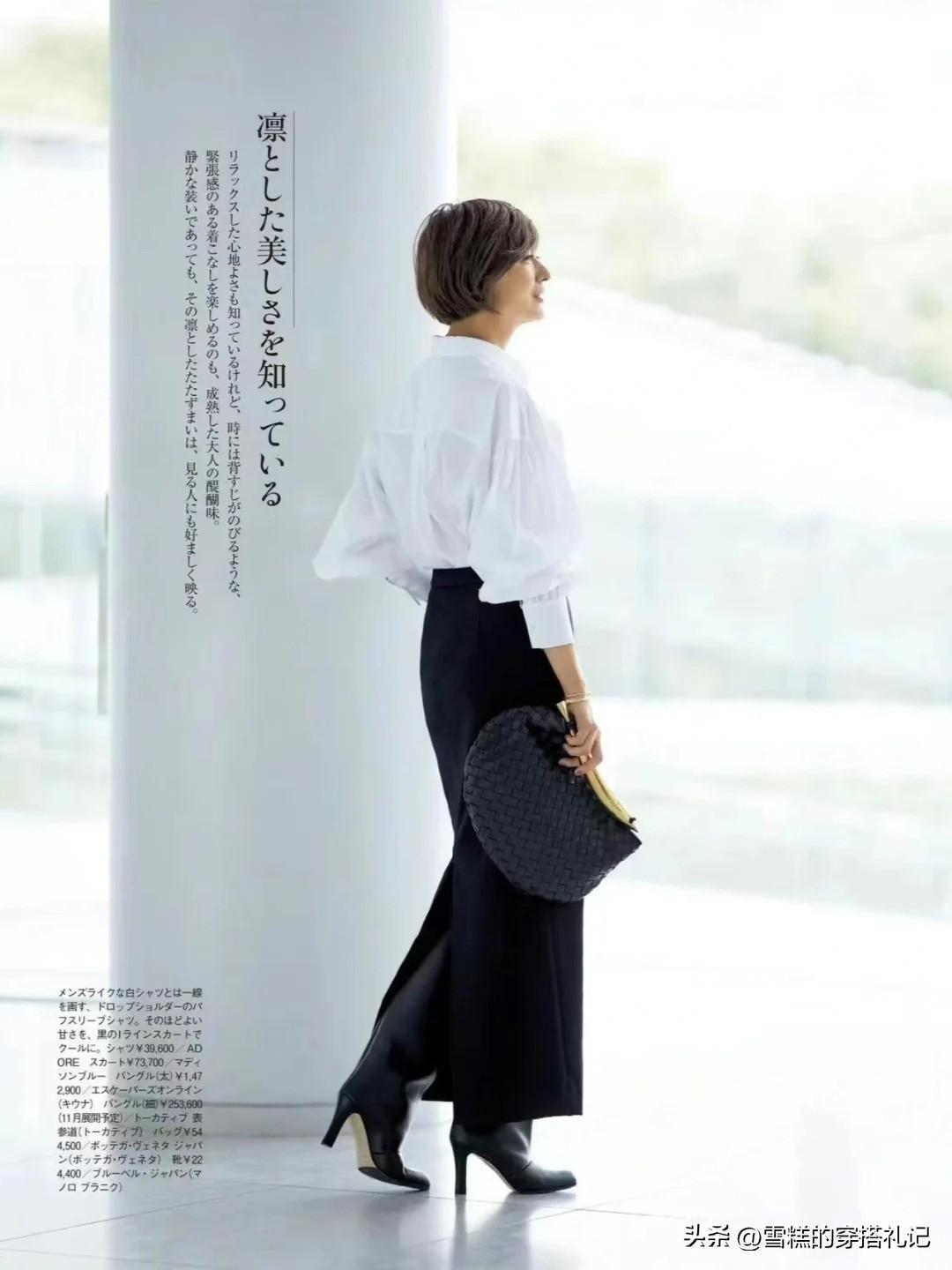 a年紀比較大的女人,想要擺脫大媽感,首先就要學會利用帶着質感和設計感的服裝來裝飾自己,幫助提高除了穩重以外的高級味道。