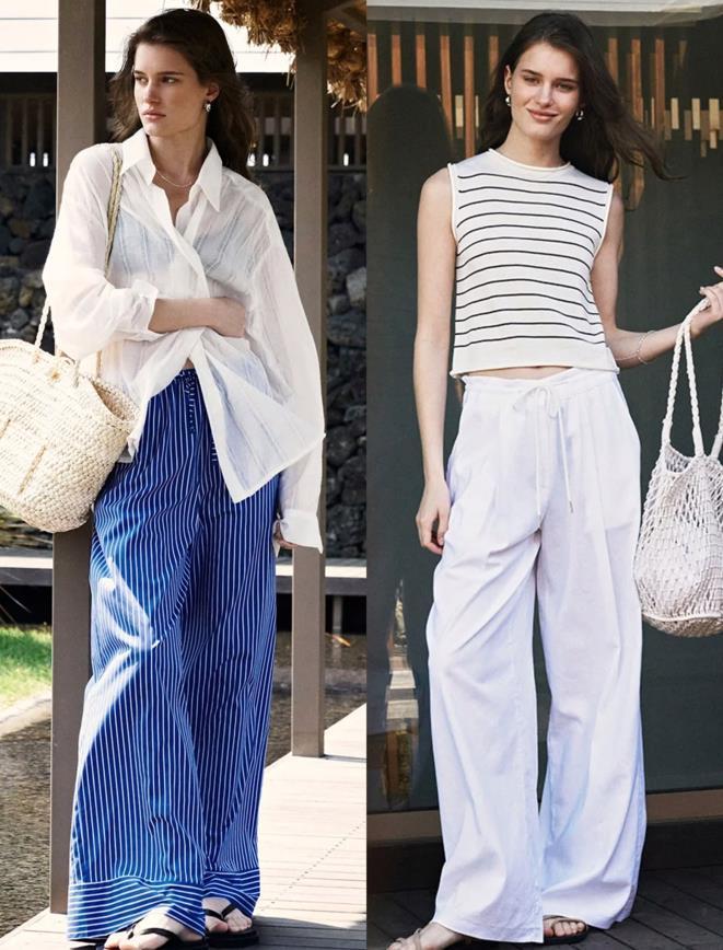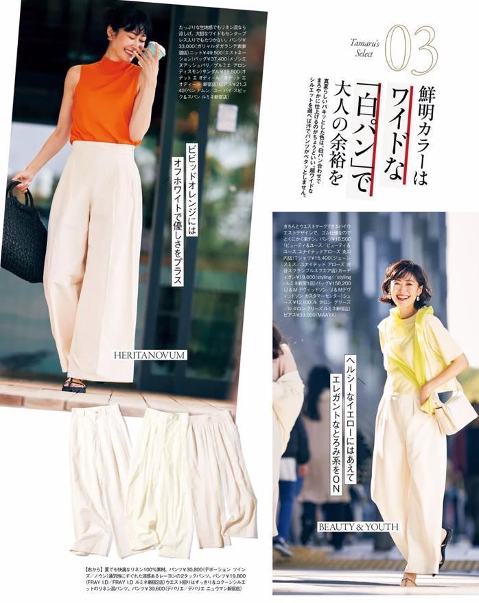 另外,白褲子的款式也非常多,我個人比較推薦款式的闊腿褲版型,還有直筒的版型,這兩種褲型,對腿型有着極佳的修飾作用,就算是乾淨的白色,也不用擔心會穿出顯胖效果。