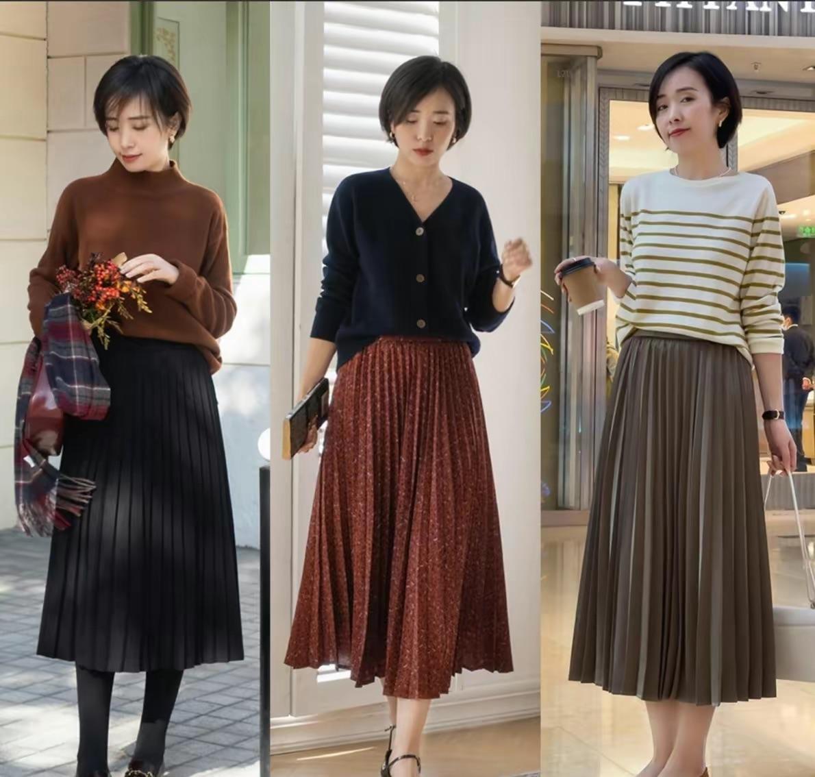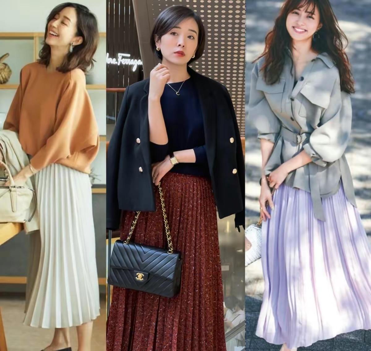上了年紀的女人,也抗拒不了百褶半身裙的誘惑,我們可以選擇立體的壓褶設計,儘量搭配大褶皺的百褶半身裙,不僅精緻黑格外體面,遮肉顯瘦的效果也更明顯。