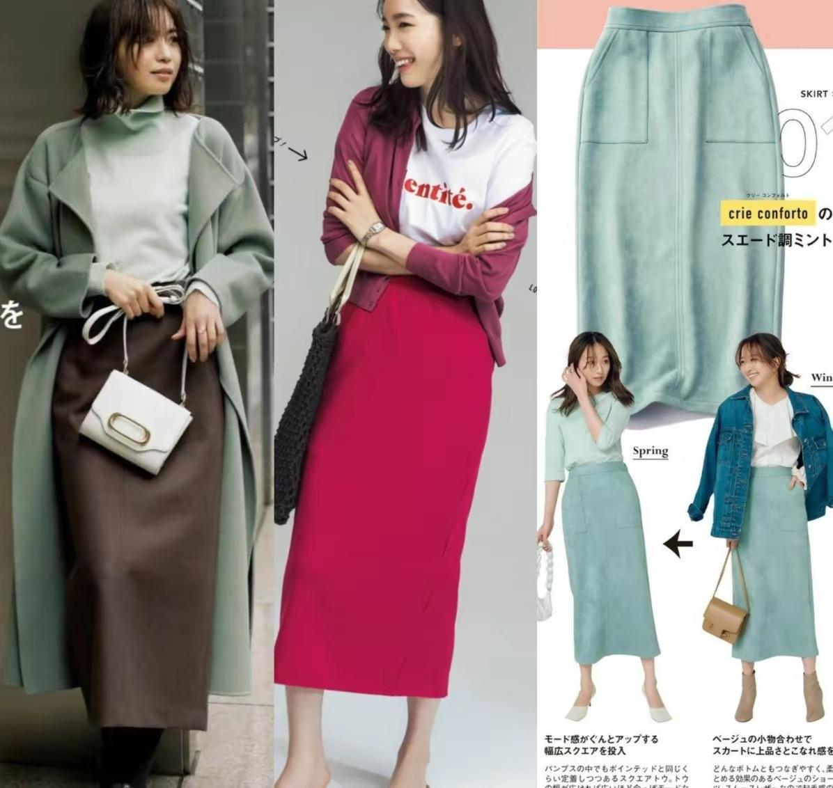 春夏季節選擇直筒半身裙,想要提升舒適度,我們可以搭配稍微微彈的面料。如果要更加洋氣減齡,還可以選擇亮色系的直筒半身裙。款式上儘量簡約,無裝飾元素的直筒半身裙也很耐看。
