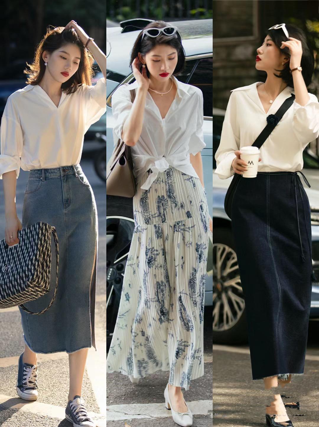 基礎款的白襯衫,要怎麼穿更顯貴?塞衣角也是最常見的搭配方式了,簡單舒適有輕盈體面,整體顯高的效果也不錯。