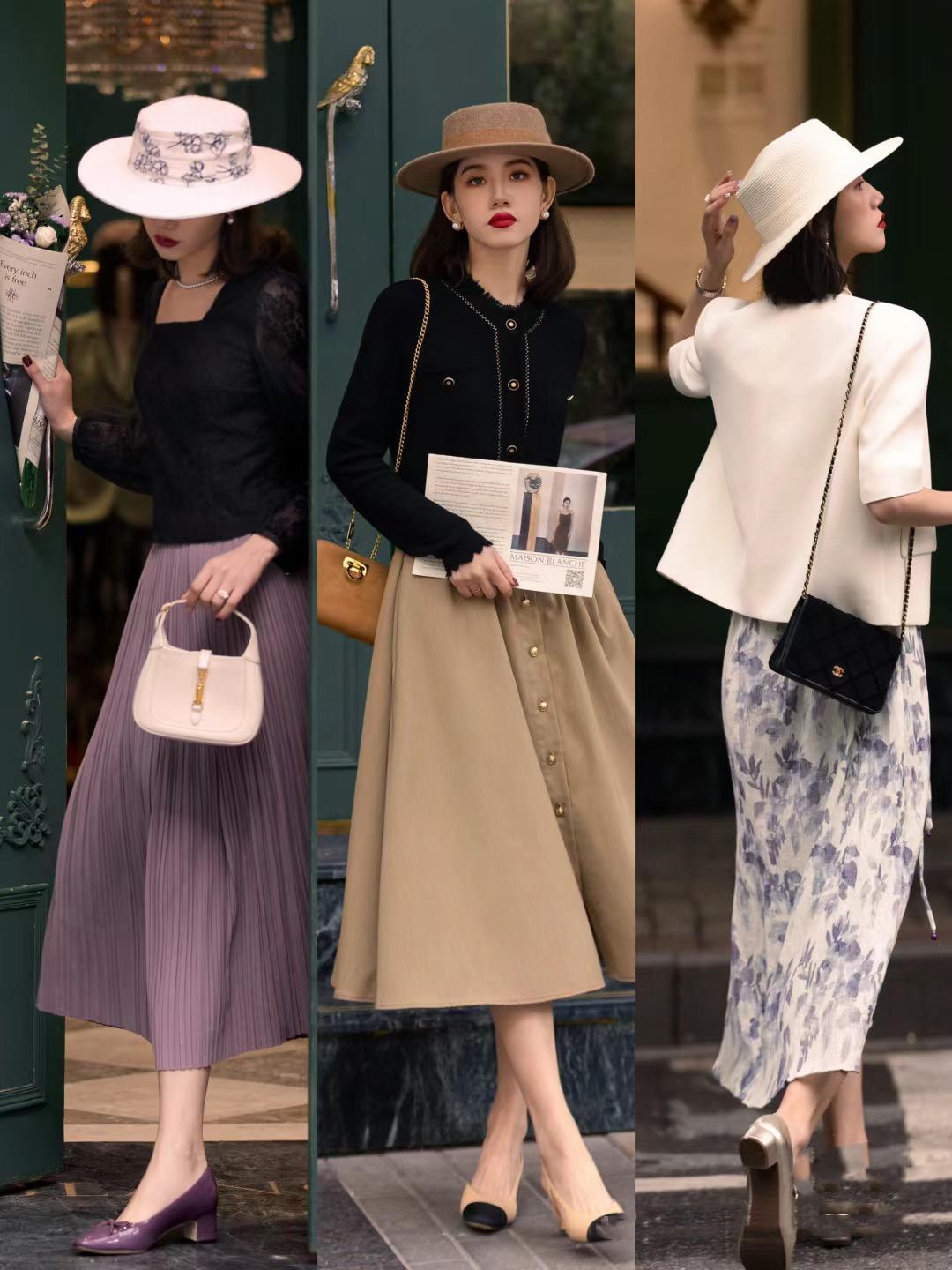 不管是修身的針織衫、還是精緻的小香風外套、或者剪裁流暢的短袖西服,在她的搭配下都優雅而靚麗。配百褶的半身裙、高級的傘裙、浪漫的印花裙,讓女性的優雅自然釋放。