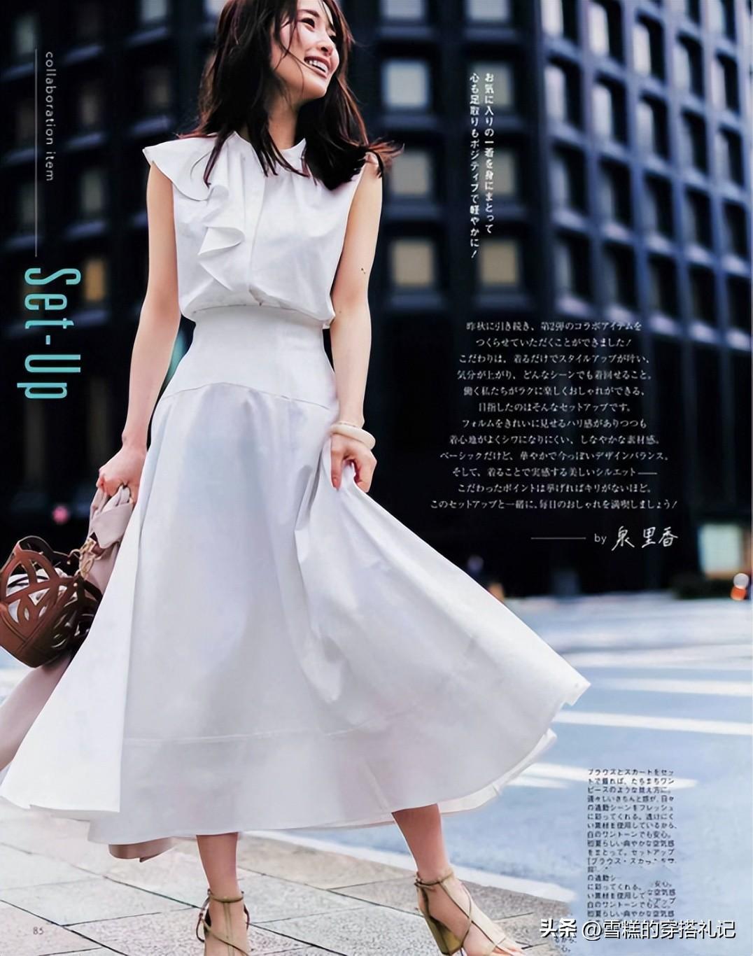 如果我們的肩膀較窄,和頭部不能形成很好的平衡,我們可以選擇墊肩、泡泡袖等設計的上衣,去加寬肩膀的寬度。針對腰部的線條,如果想突出腰部曲線,可以選擇繫帶等設計元素。而如果想要遮擋和修飾腰部,則搭配帶有寬腰帶的A字裙是個不錯的選擇。