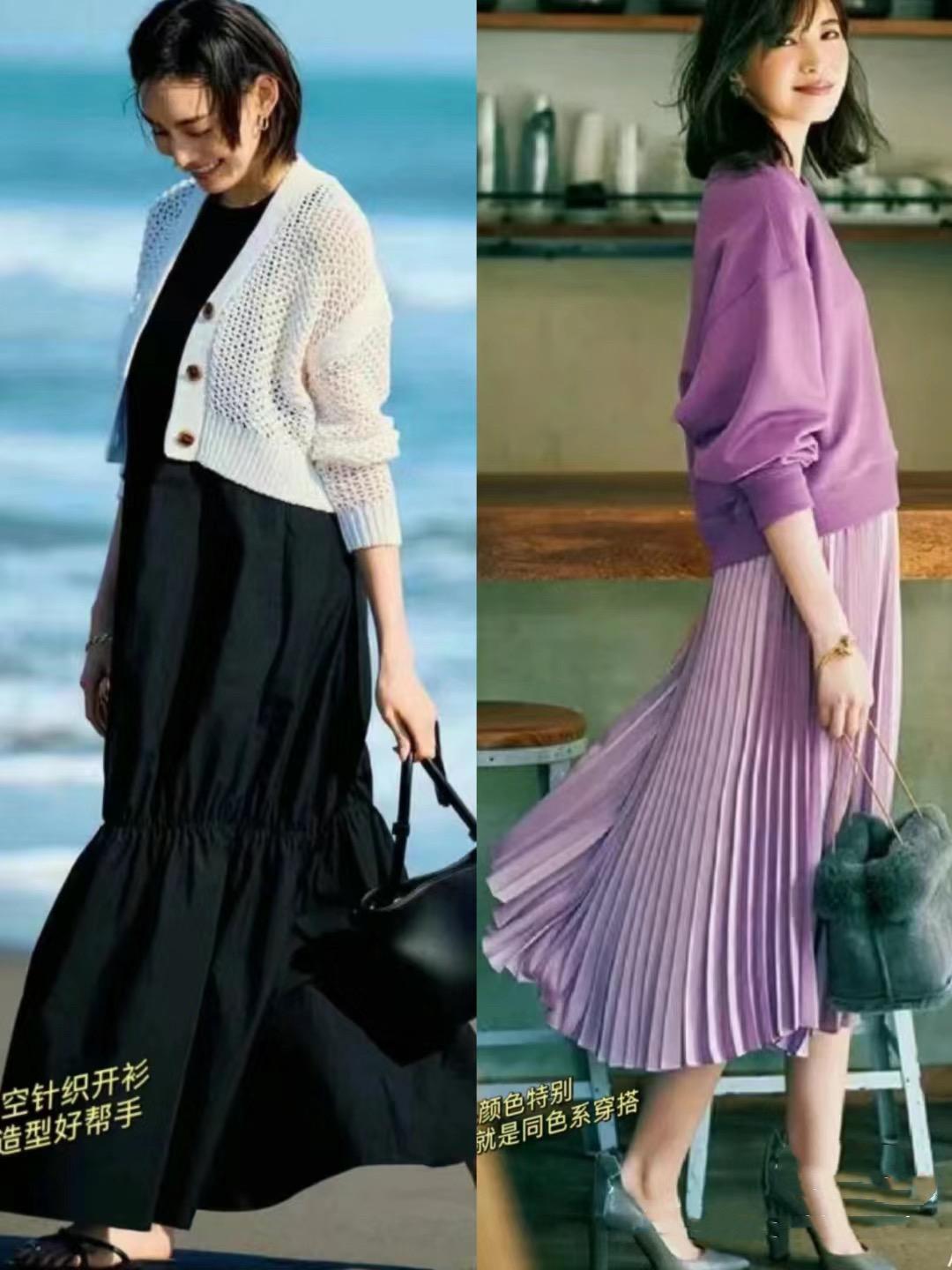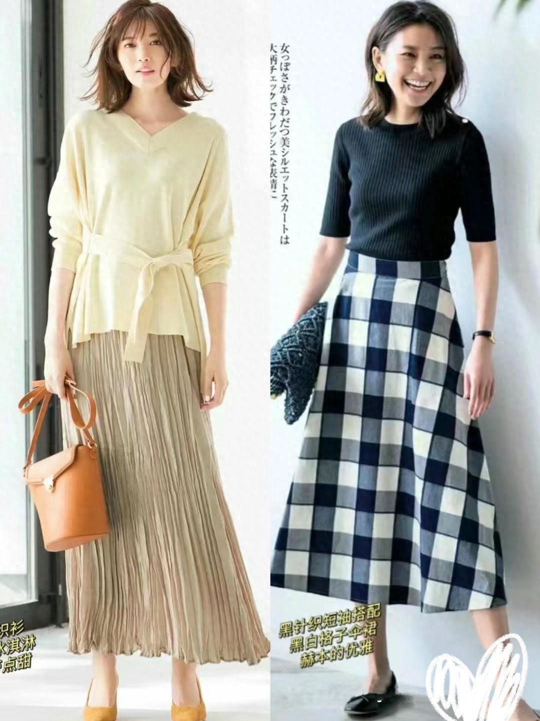 比如修身的針織衫+高腰的A字形半身裙,就是一種典型的上短下長的穿搭look。高腰的A字型半身裙,可以包容小腹部的厚重,大腿線條的服裝。配修身針織衫更溫柔,搭尖頭高跟鞋瞬間時髦起來。