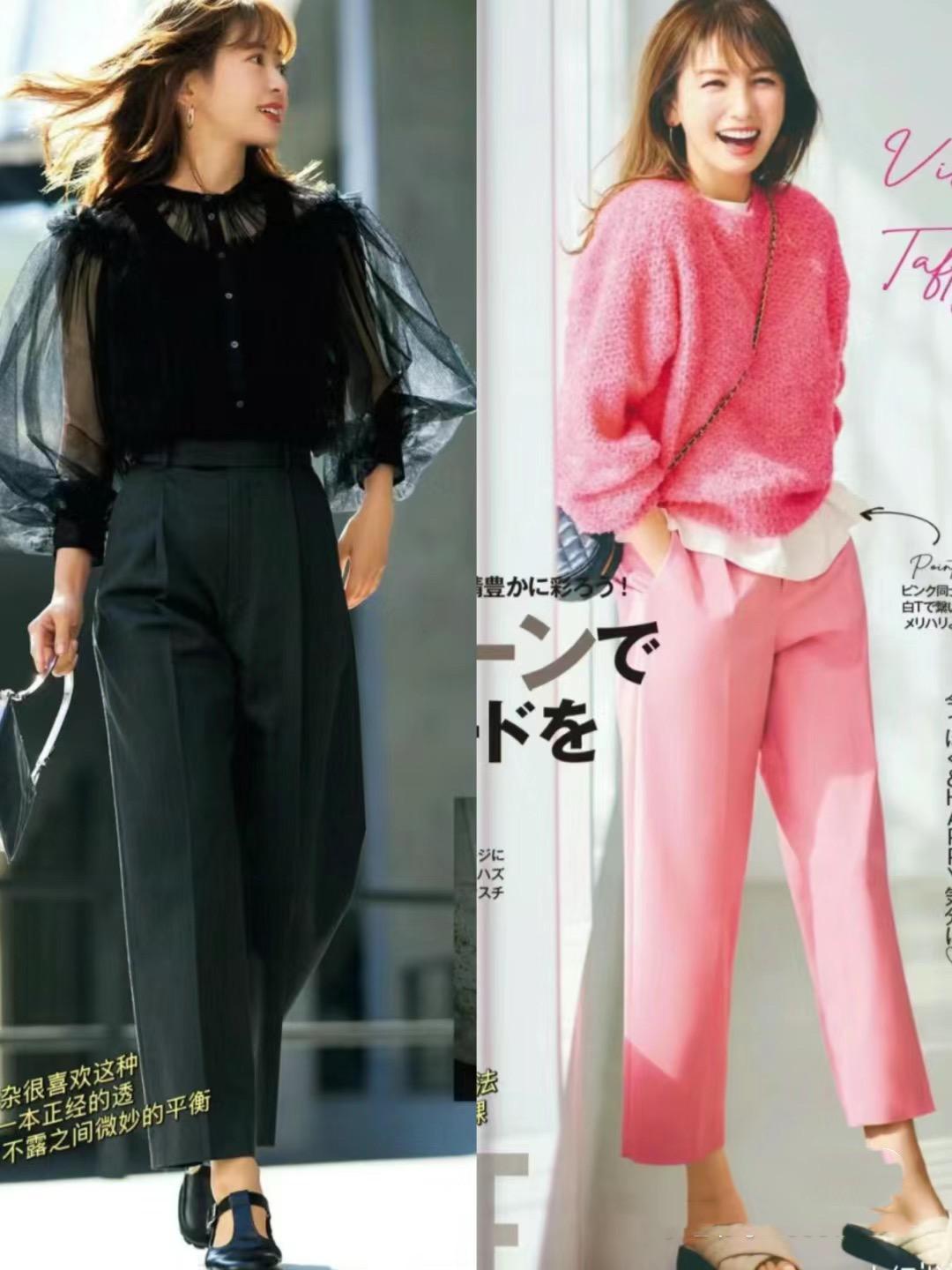 高腰線+露腳踝,也是簡單衣服時髦穿的要素。雖然服裝的款式、色彩、細節都比較簡單,但融入了搭配的技巧,也可以更時髦洋氣。