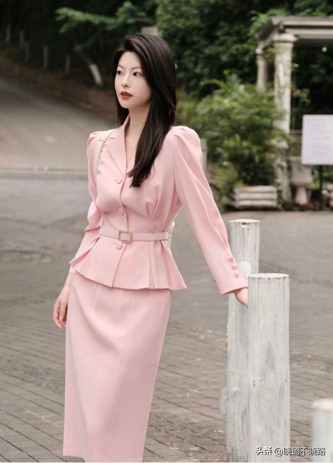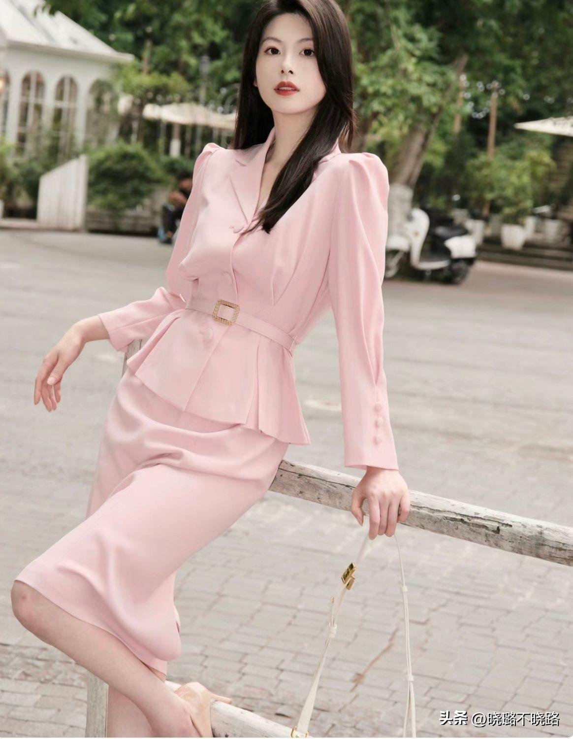 柔和桃這一款比較溫柔淡雅的色系,還是更推薦大家可以用作連體型單品的搭配,例如像優雅的連體褲或者是連衣裙,襯托出來的氣質狀態更加的偏向於輕熟和優雅以及溫柔集於一身的視覺狀態,但是在這個時候也一定要注重襯托,絕對標準比例的襯托線在高腰的位置一定要有收腰的設計。