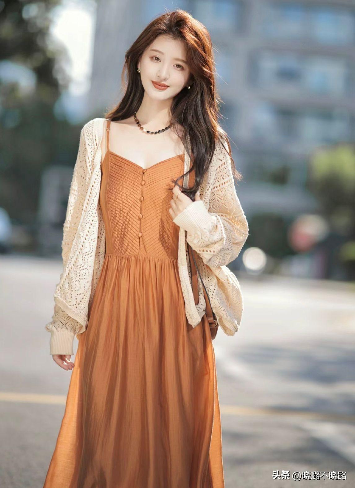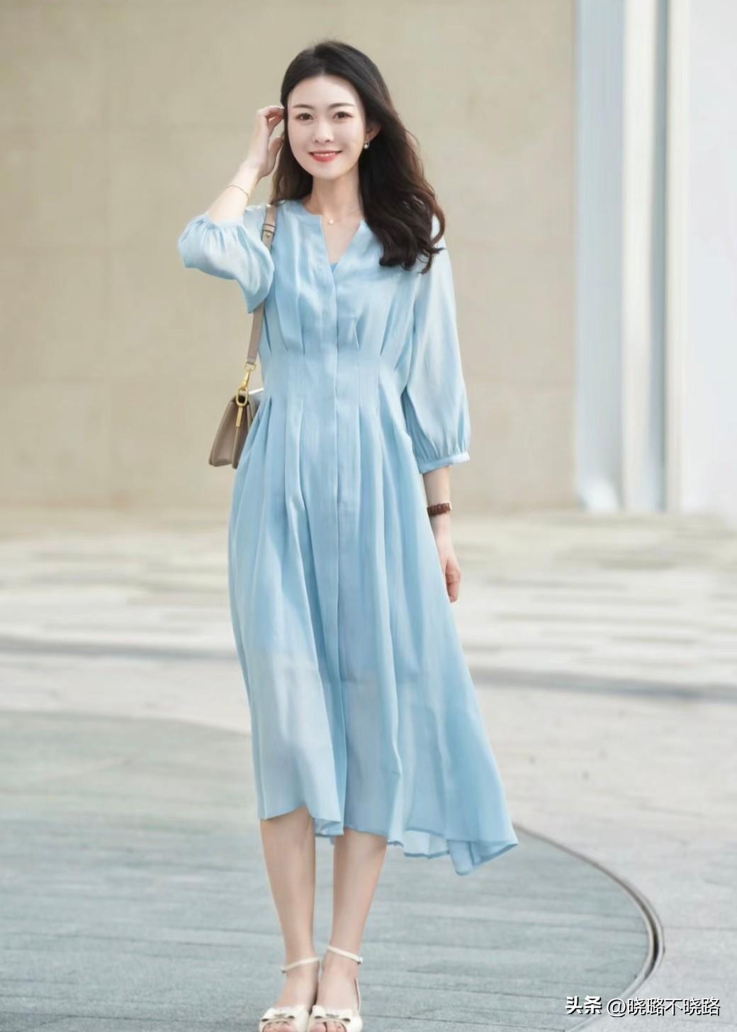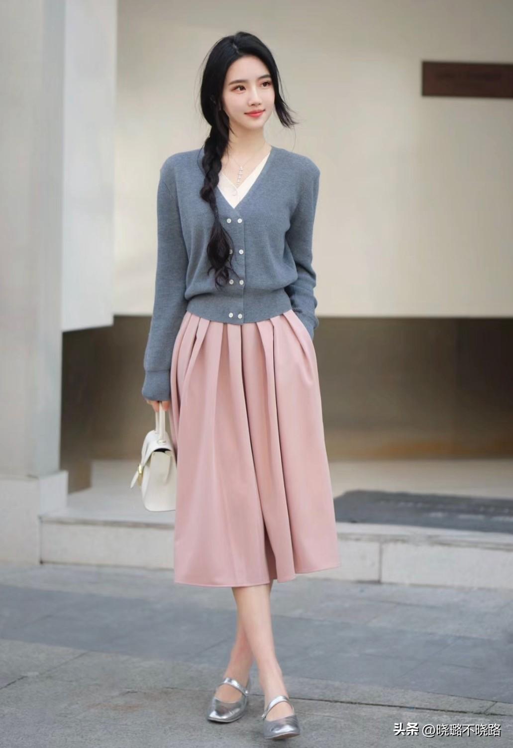 這一款顏色的搭配在春夏季節的時候有一個必要的展現重點就是還是要注重一定的露膚感襯托,所以即便是長款的單品,也建議大家可以露出來一小截白皙的腿部線條,又或者是直接搭配低領的上衣單品。襯托肌膚白皙的同時也能夠彰顯女性獨有的優雅以及溫柔的感覺。