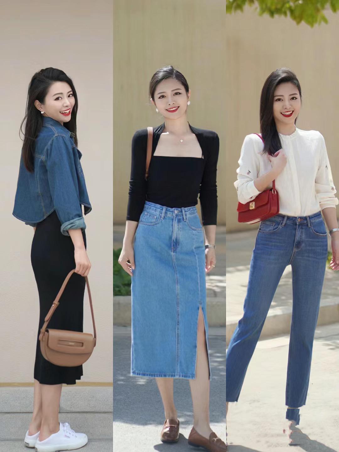修身一點的上衣,方領的設計露出鎖骨更顯精緻。我們可以用修身上衣配高腰的直筒半身裙,整體利落又顯瘦。直筒牛仔半身裙配開叉的剪裁,也更多了輕盈與洋氣。