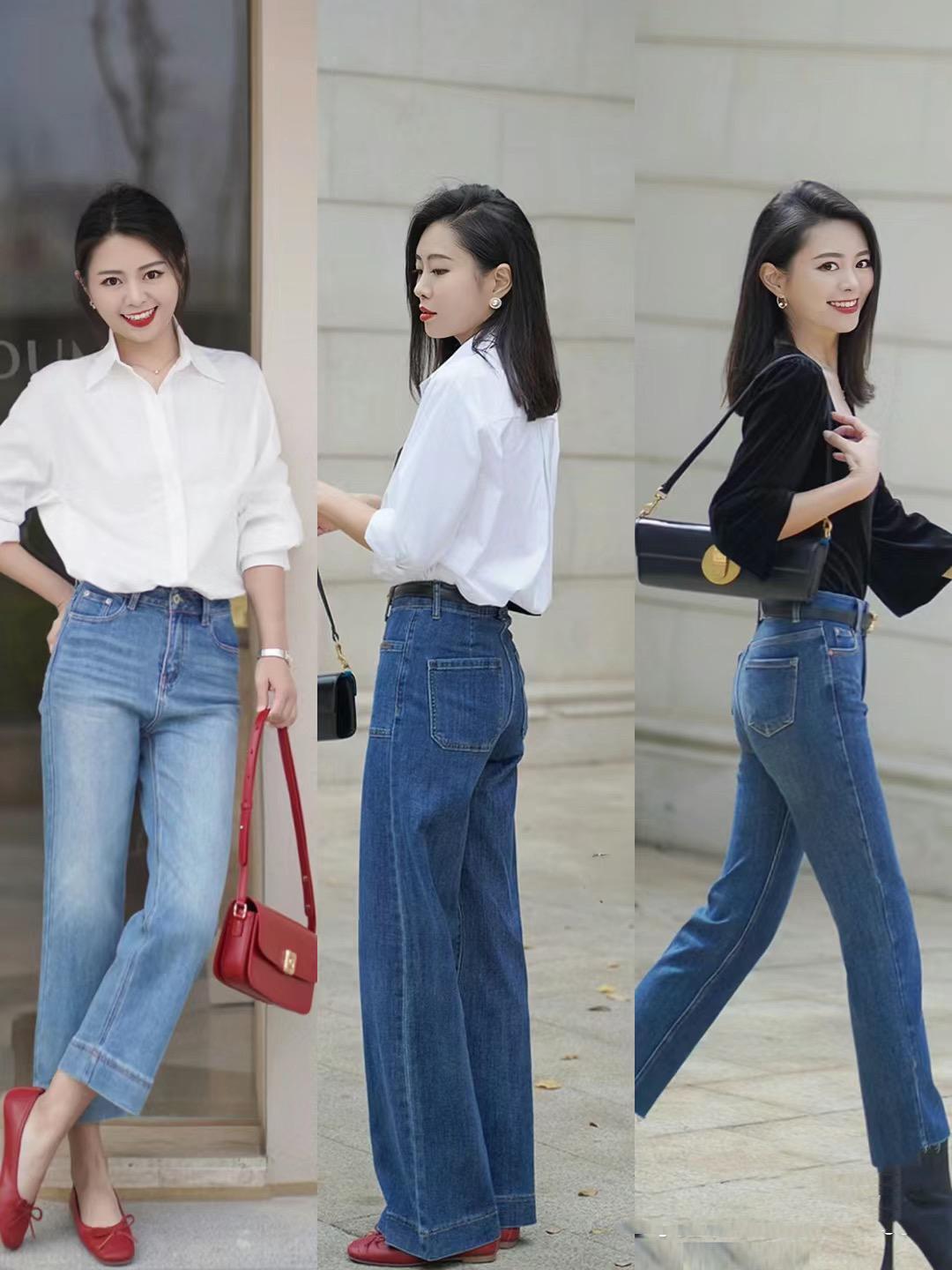 款式簡單的白襯衫,可以適當的挽起衣袖,增加視覺上的輕盈感。我們用經典白襯衫來搭配高腰的直筒牛仔褲,簡單舒適的造型、又顯得雙腿筆直修長。