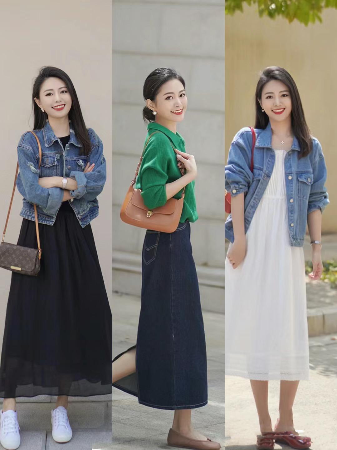 短款的牛仔外套,來搭配極簡風的連衣裙,率性大方也很減齡。短款的牛仔外套,自帶青春感,配極簡風連衣裙大方又時尚。