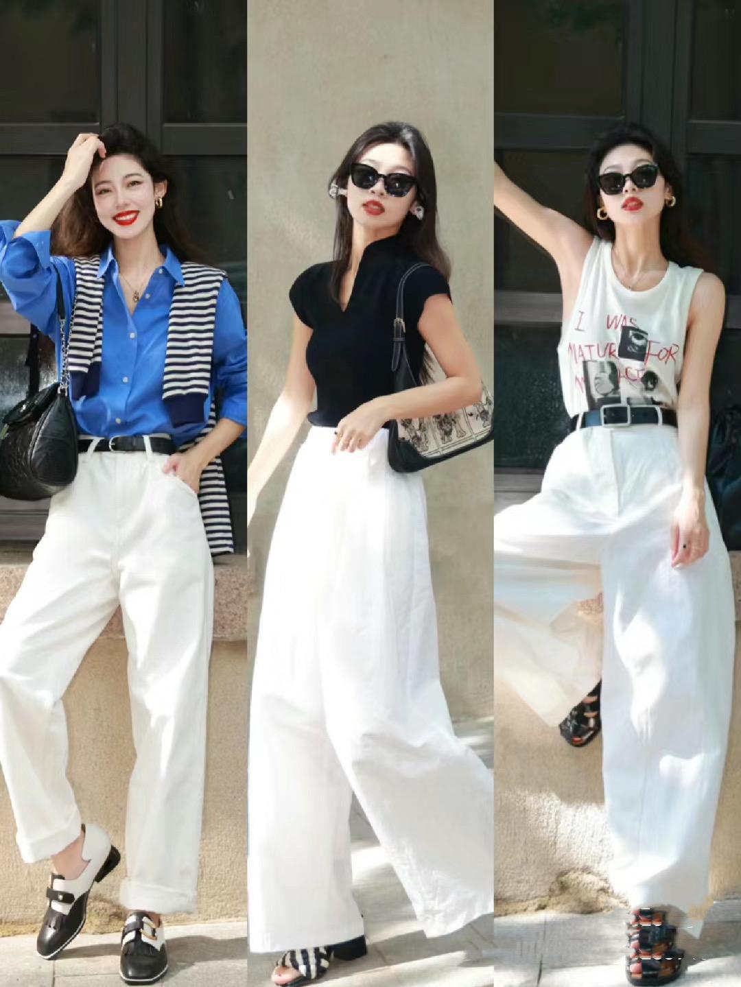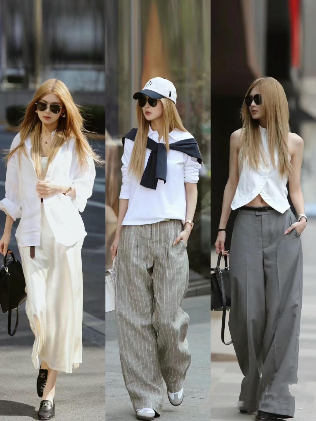 比如寬鬆的白襯衫,我們可以疊搭修身的連衣裙,基礎款的polo衫,也可以配條紋闊腿褲。西裝馬甲,還可以配西裝闊腿褲,酷颯又率性的穿搭,更具吸睛效果。