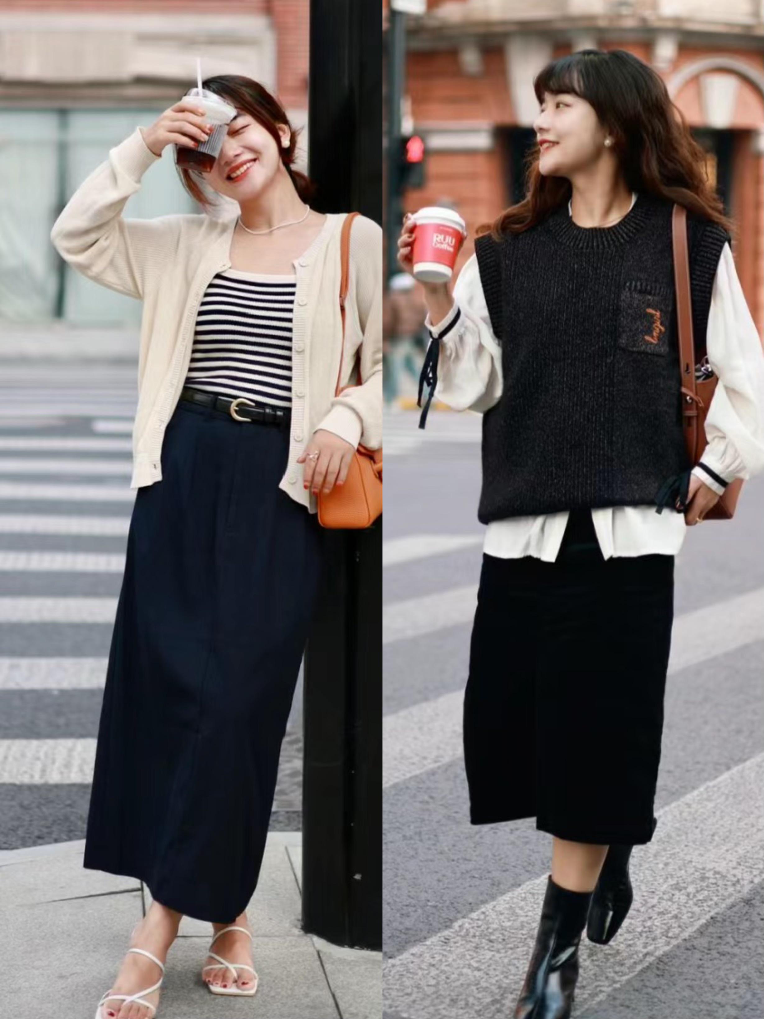 穿上中跟鞋我們的腿型和脊背都更自然的挺直了,相對於穿平底鞋的含胸駝背,本就高了幾公分。這時候搭配高腰的膝下裙,就能自然的拉伸下身比例、顯得雙腿修長。