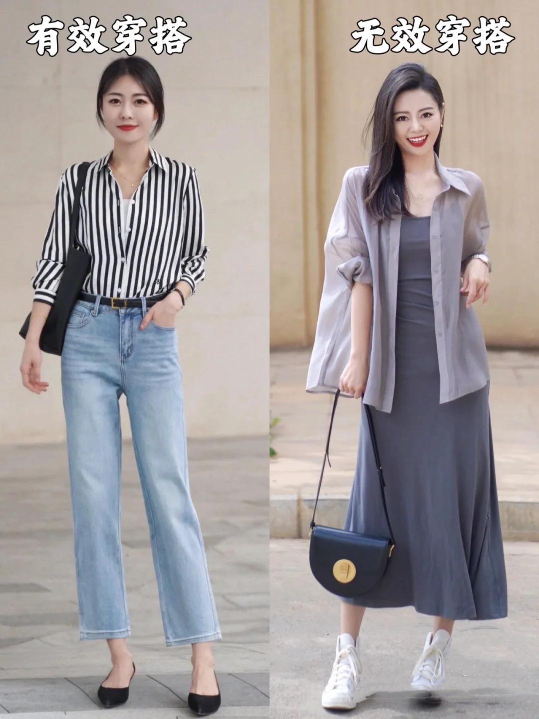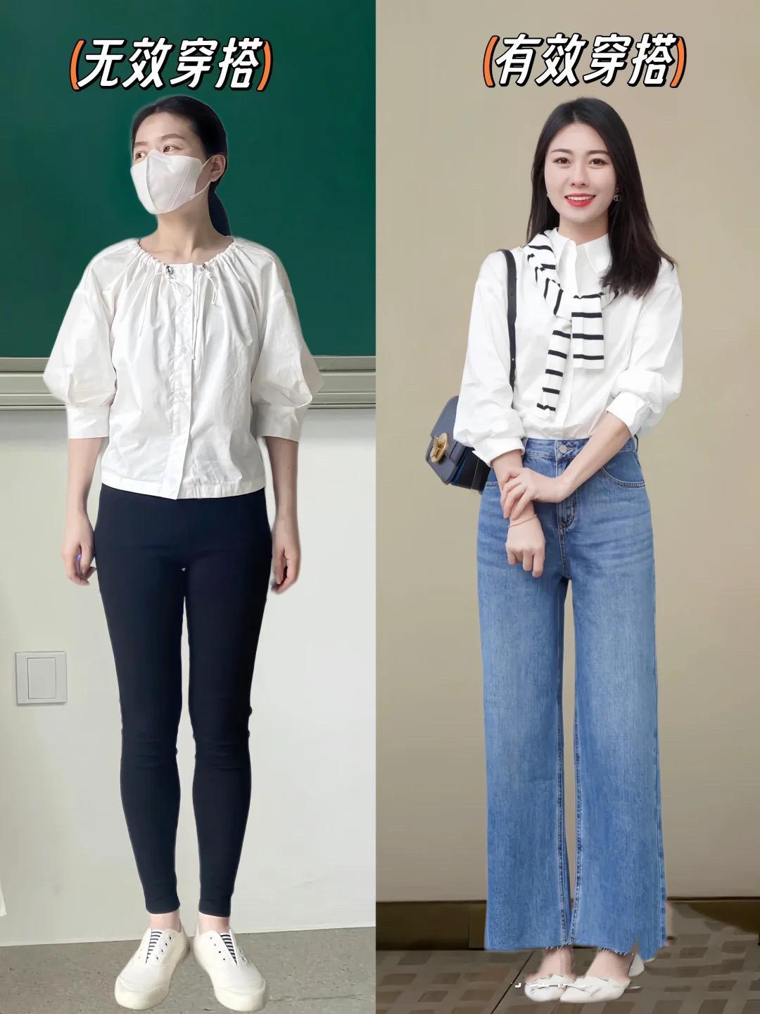 當無效穿搭撞上有效穿搭,才明白:會穿衣真的很加分。一件白襯衫配小黑褲,格外容易暴露腿型,視覺上也不夠優雅。