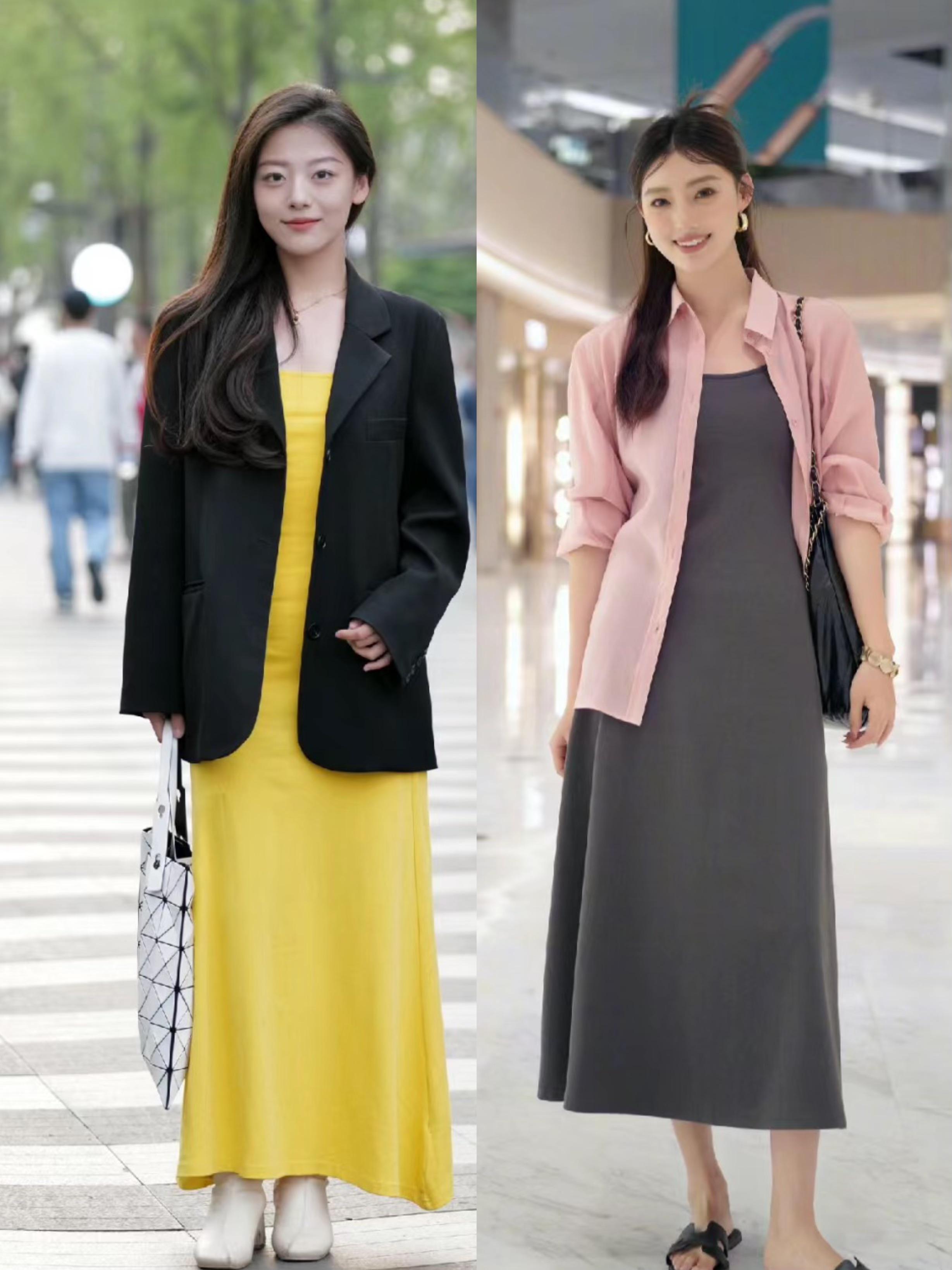 春天裏的及踝裙,可以選擇半身裙、也可以搭配連衣裙。可以選擇吊帶款、也可以選擇掛脖款。