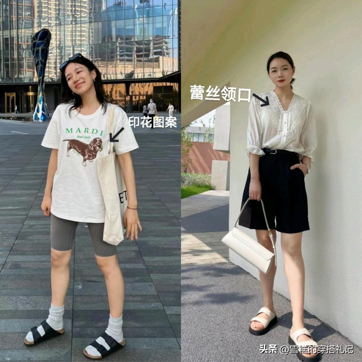 T恤的款式不能太緊身,面料也要足夠透氣有彈力,穿在身上纔會更舒服。牛仔褲的長度儘量露出腳踝,搭配露腳背的勃肯涼鞋,才能擺脫堆積感。