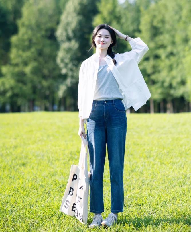 而休閒的戶外場合,則可以選擇寬鬆版型的白襯衫,搭配淺色牛仔藍褲子,腳下踩着一雙帆布鞋、運動鞋等,這樣就很好營造出輕鬆自在的氛圍感了。