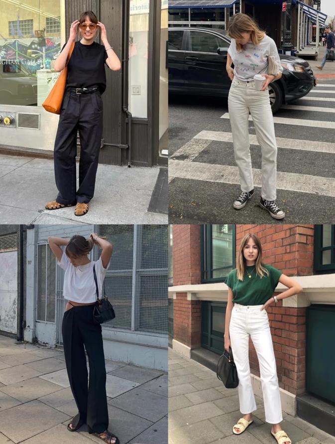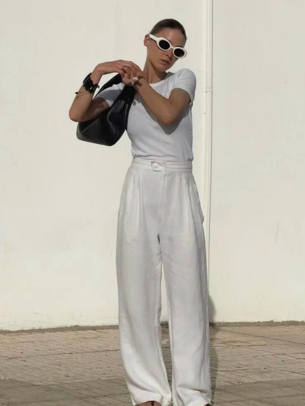 在炎熱的夏季,你可以選擇一件短袖t恤,搭配透氣舒適的闊腿褲,這樣不僅保證了舒適度,還展現出時尚效果。