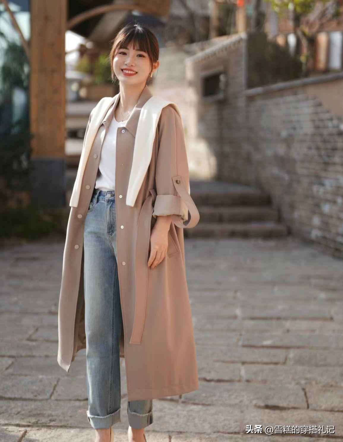 ③ 風衣+牛仔褲,真的是普通沒有魅力