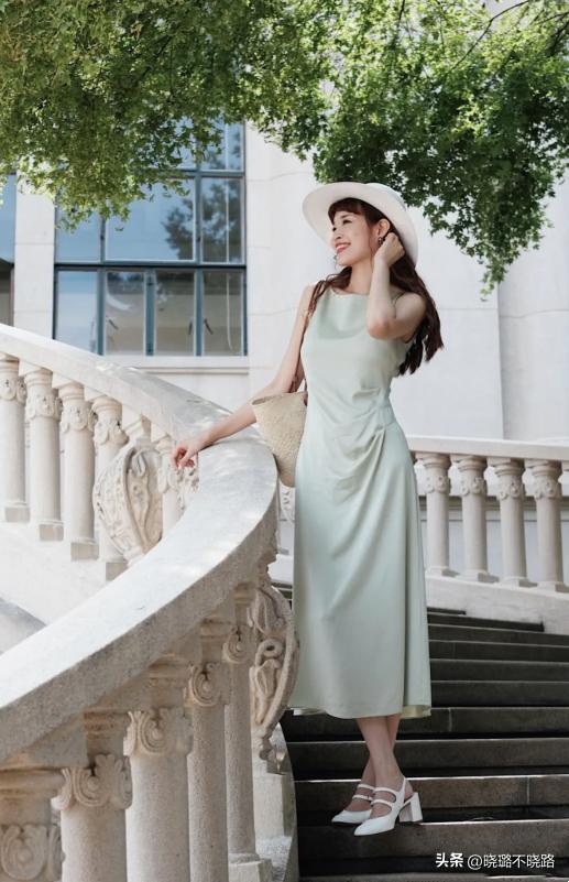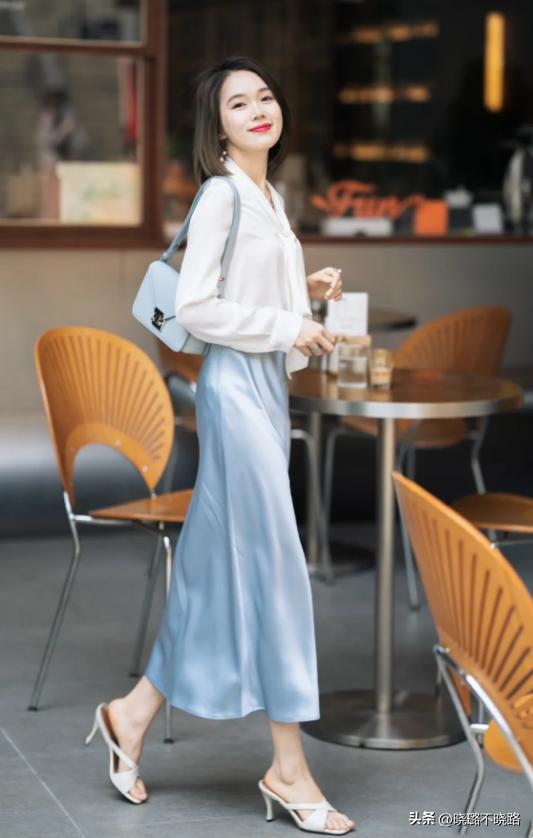 3、裙長過膝不過踝,穿出纖細的高挑感