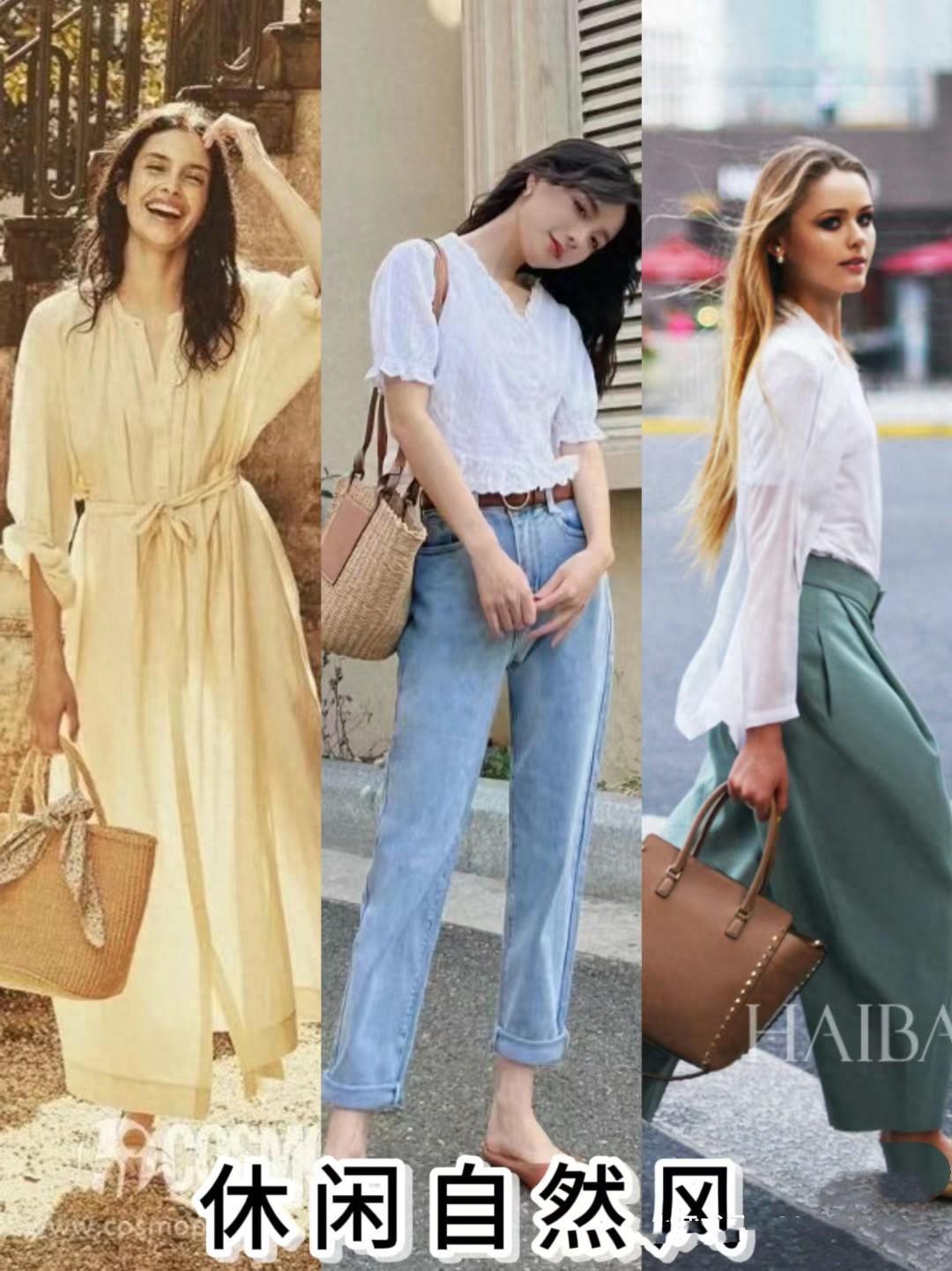 這一類的穿搭以舒適自然爲主,同時還能表現出休閒放鬆的姿態。寬鬆的棉麻質感連衣裙、白色襯衫、牛仔褲、闊腿褲,都是不會出錯的單品。