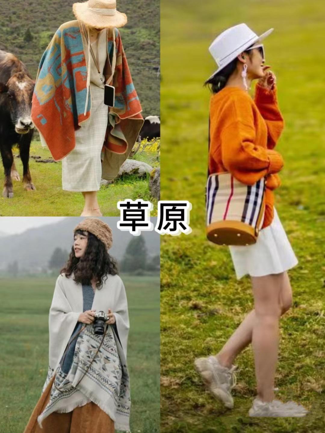 五一假期,如果要去一趟大草原。那麼一定要嘗試色彩明亮度比較高的服裝,這樣的穿搭纔會更加醒目出片。