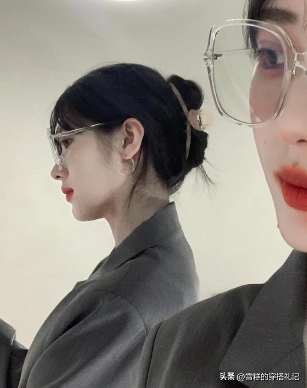 抓夾作爲一種髮飾,如果使用不當,可能會給人一種“大媽氣質”的印象,但是通過巧妙地搭配耳環,可以有效地提升整體造型的精緻感。像之前美式風格的圓形圈耳環和抓夾搭配在一起,可以平衡兩個風格之間的造型點。