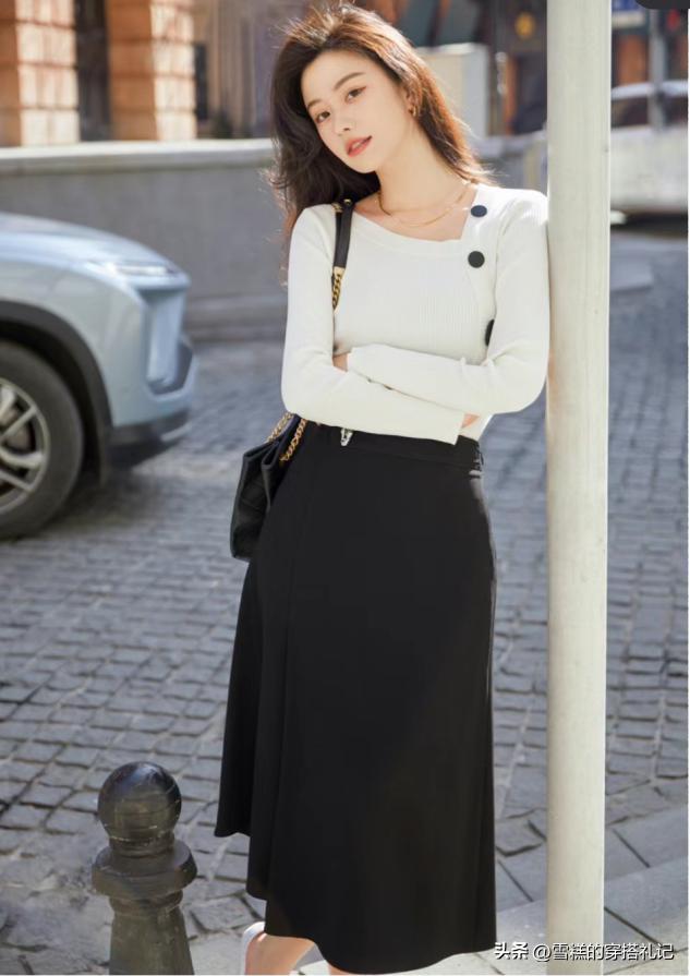 針織衫和半身裙同樣的基礎簡約,結合在一起可以利用面料之間的薄厚對比來彰顯身材優勢。如果是稍微厚實一些的針織開衫,那麼儘量選擇雪紡、棉麻等輕盈布料的半身裙,這樣穿起來更加的輕薄透氣,還不至於過分的臃腫厚重。