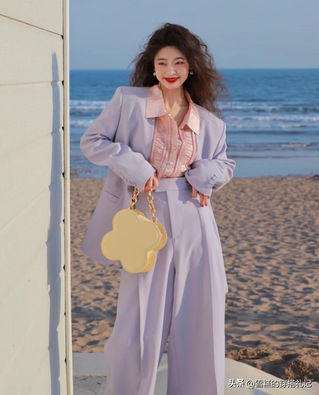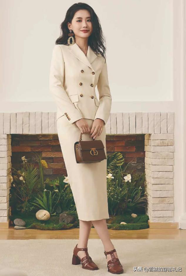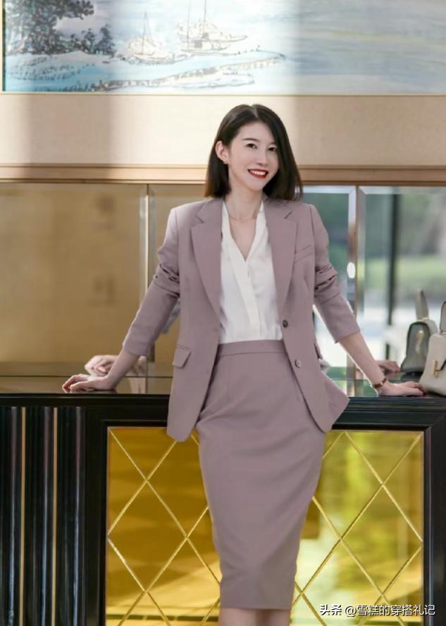 儘量選擇同色調進行組合,這樣可以使得整個造型更加的和諧自然一些,比如想要更加的端莊大氣,直接選擇黑色或者棕色系的西裝套裙,分分鐘變成都市麗人,而如果想要風格上更加慵懶隨性一些,也可以多嘗試一下低飽和度的粉色系或者杏色系的西裝套裙,顏色淡雅,穿起來更加有氛圍感。