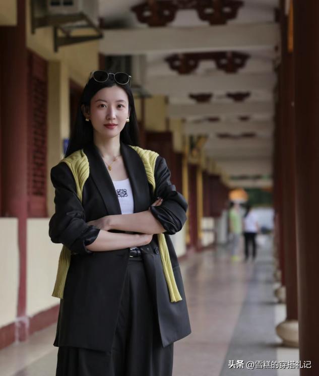 春夏季節也可以多試試這種疊穿方式,輕薄的背心或者打底衫作爲內搭配上挺闊有型的外套,進一步遮擋胳膊和小肚子上的肉肉,在肩膀附近疊加一條披肩,既可以豐富肩膀位置的層次,又可以點綴造型,使得整體更加精緻。