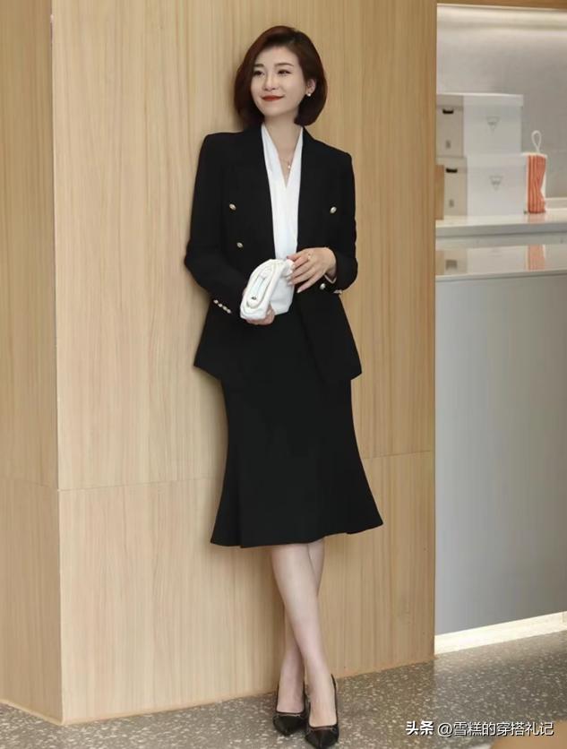 中年女性想要穿的更加大方得體,一定要試試西裝套裙。西裝外套與裙裝的材質和顏色都恰到好處,更好地結合在一起呈現出乾淨利落的感覺,而且還能夠輕鬆地襯托出優雅感。