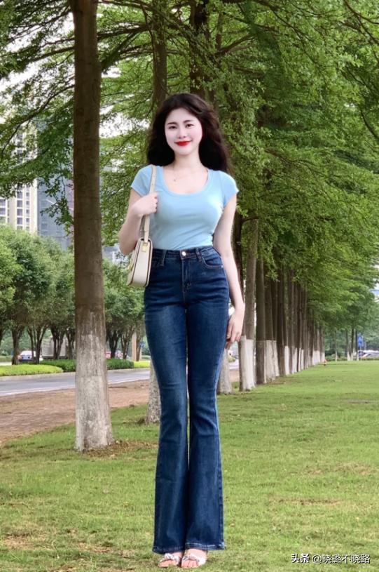 ♡天藍色+深藍色:同色系的配色方案百搭經典而又能輕鬆駕馭,選擇天藍色的上衣可以很好的襯膚顯白,又具有減齡的效果。而深藍色馬蹄褲的修身設計能夠突顯雙腿線條,展現出女性的完美身姿。