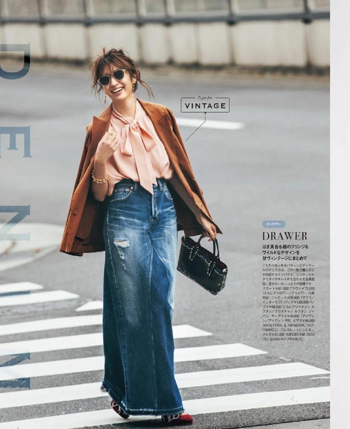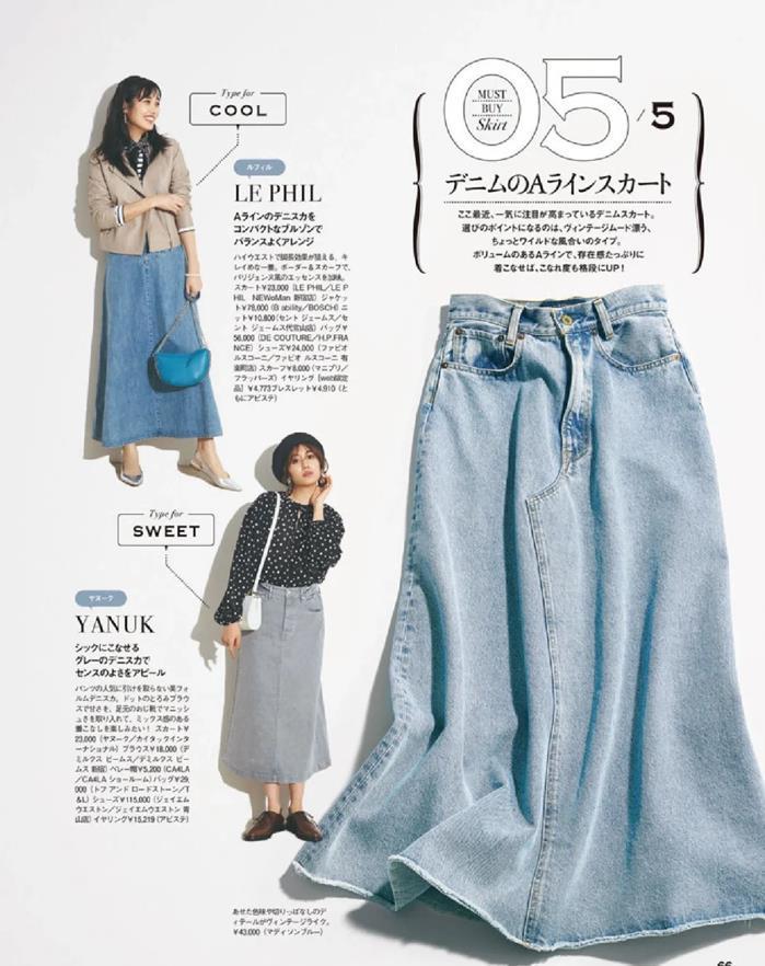 另外,牛仔半裙還是青春的代表,少女們穿上牛仔半裙在校園裏漫步,充滿了活力與朝氣,年齡大的女性穿上牛仔半裙,則多了幾分減齡的效果。