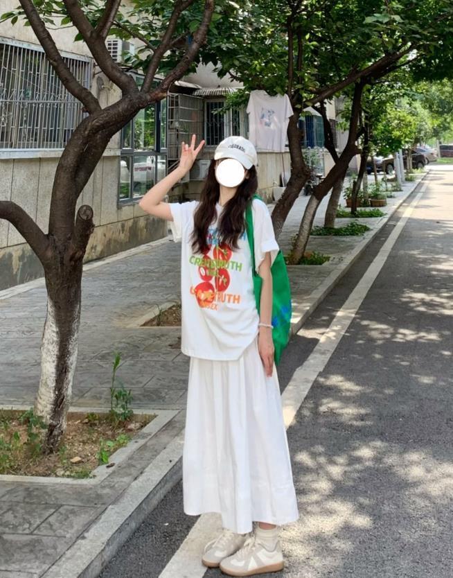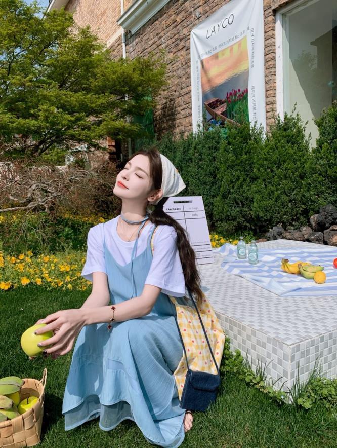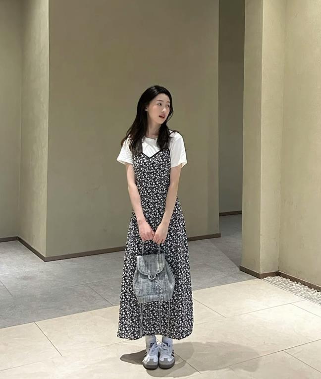 簡約的白色t恤,無論是與純色吊帶裙相配,還是碎花的款式,都可以呈現出一種極致的優雅,t恤的簡潔與純粹,很好襯托出吊帶裙的溫柔,這樣搭配不僅讓整體造型顯得氣質,還增加了一份層次感。