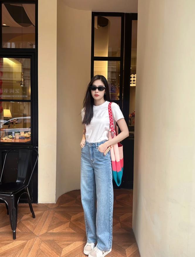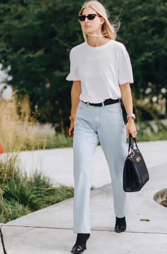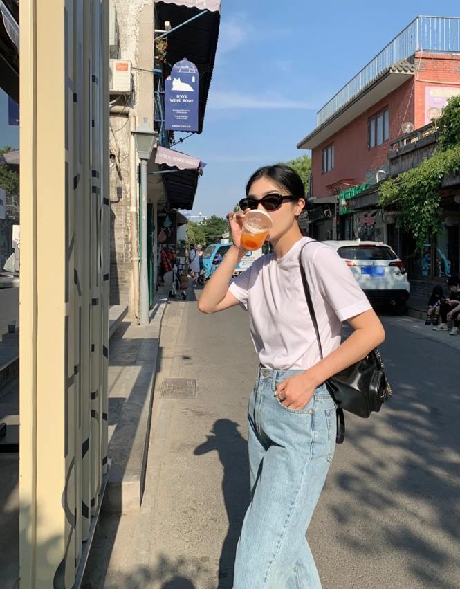 牛仔褲的經典藍色,不管是深邃的藍,還是淺的水洗藍,都可以與純白t恤相配,共同營造出休閒舒適的氛圍感。這種穿搭組合不僅簡單還非常時尚,無論是在日常出行,還是聚餐約會,都能讓人倍感輕鬆。