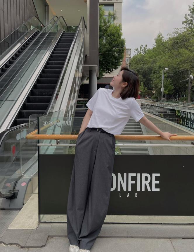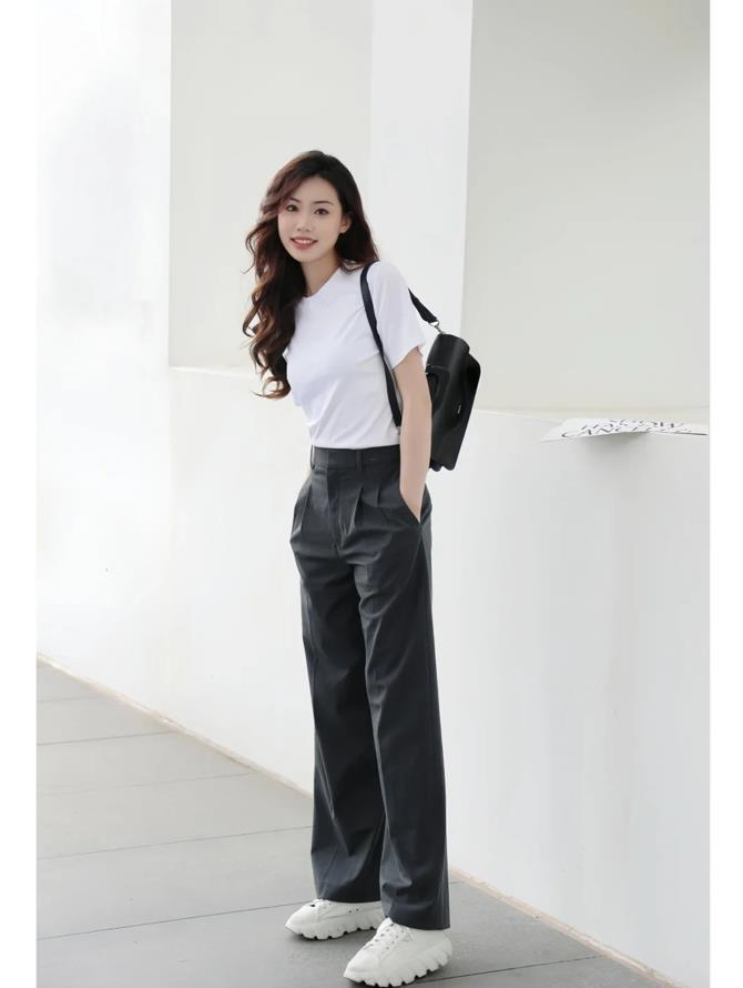 對於乾淨基礎又百搭的t恤,要怎麼去搭配才更時髦好看呢?如果你想要穿得更幹練氣質一些,那麼就選擇一條西裝褲吧。這一對cp可是非常不錯的組合。