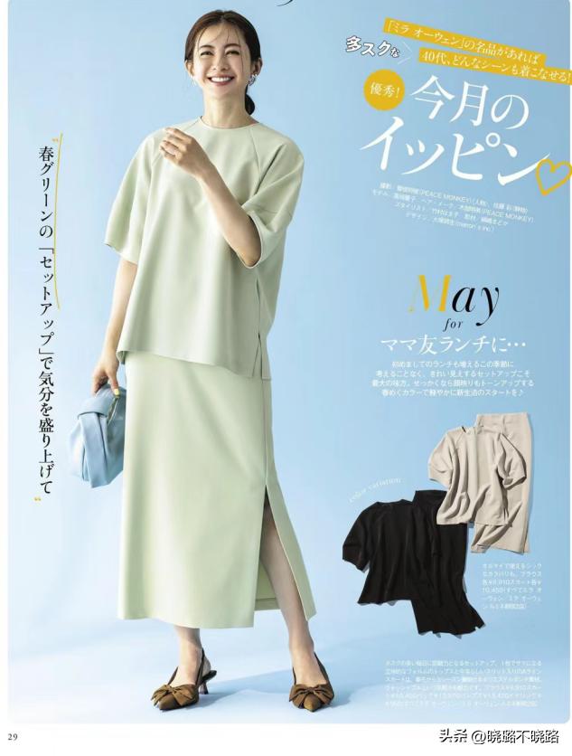日本主婦在選擇服裝單品的時候基本都會認準輪廓清晰且具有線條感的款式這樣穿起來會更加的修身合體,它的好處的揚長避短修飾身材轉板問題。比如在他們的日常穿搭當中非常常見的風衣外套和百褶裙,前者通過利落的廓形遮擋上半身的贅肉,後者利用細膩的褶皺和寬鬆的裙襬來修飾腿部的不完美,隨便搭配一件簡單的鞋子就非常的高挑纖細。