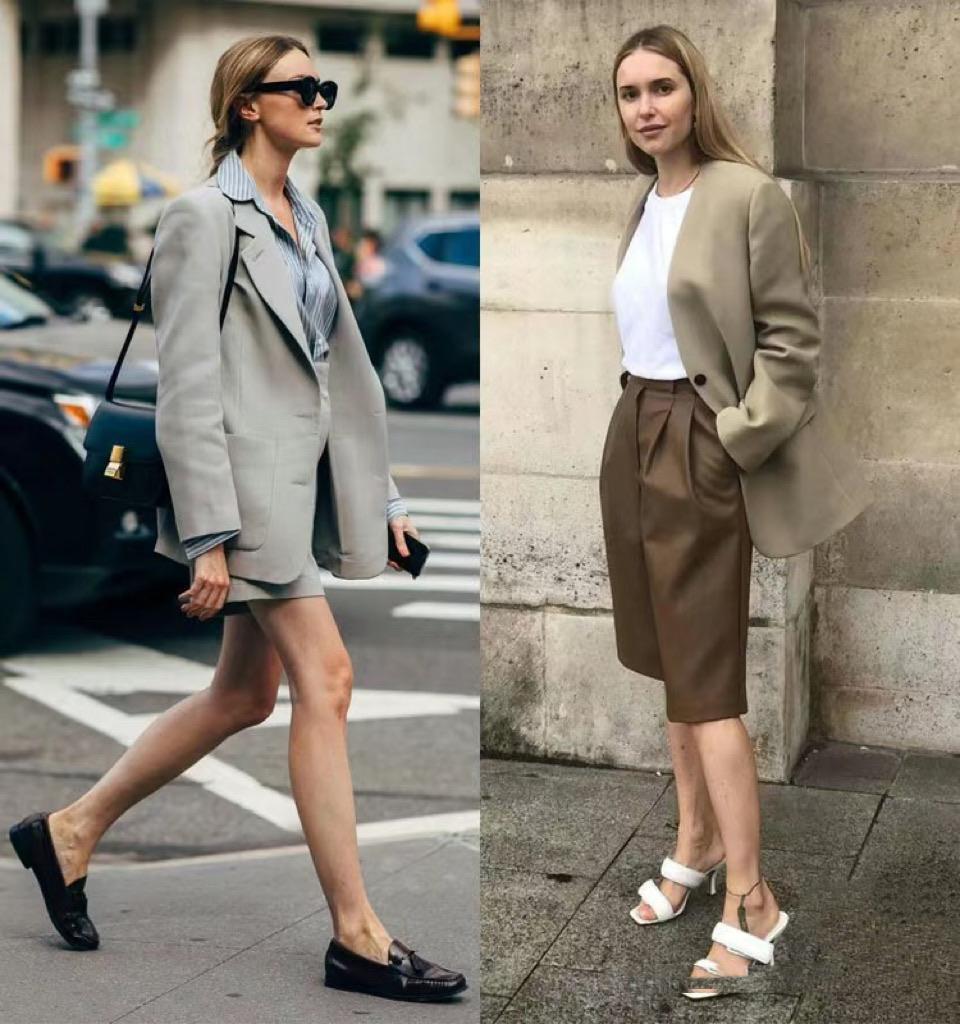 走上街頭才發現:“西裝+短褲”簡約帥氣,更適合40+短女人!