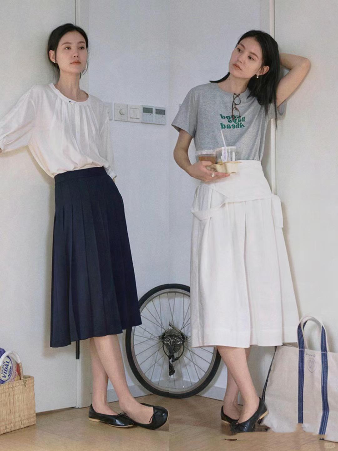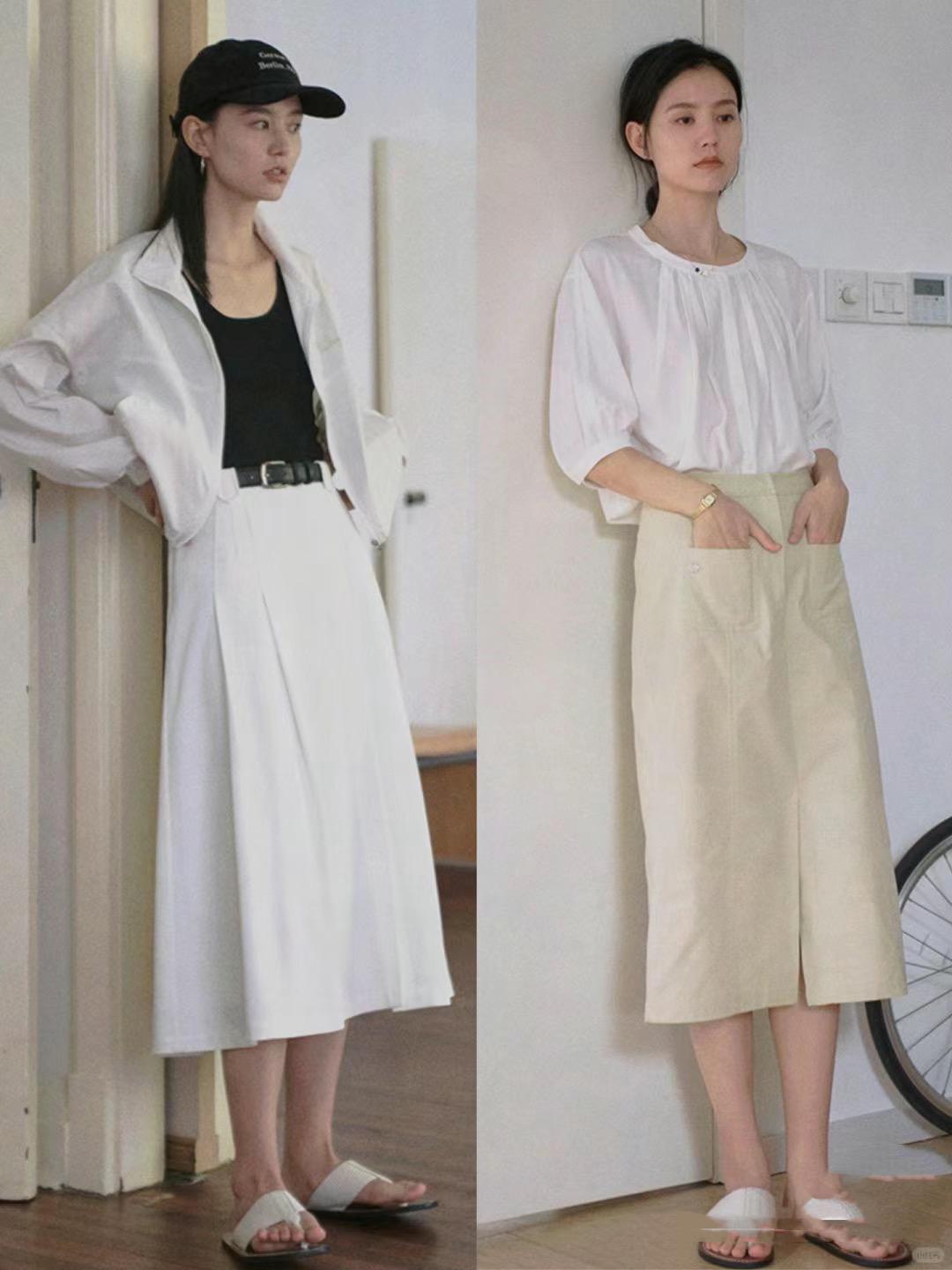 領口融入捏褶設計的白色襯衫,選擇了帶有筋骨感的面料,對於身材的修飾性也更強。白色襯衫配高腰的百褶半身裙,大方耐看、還很顯氣質。