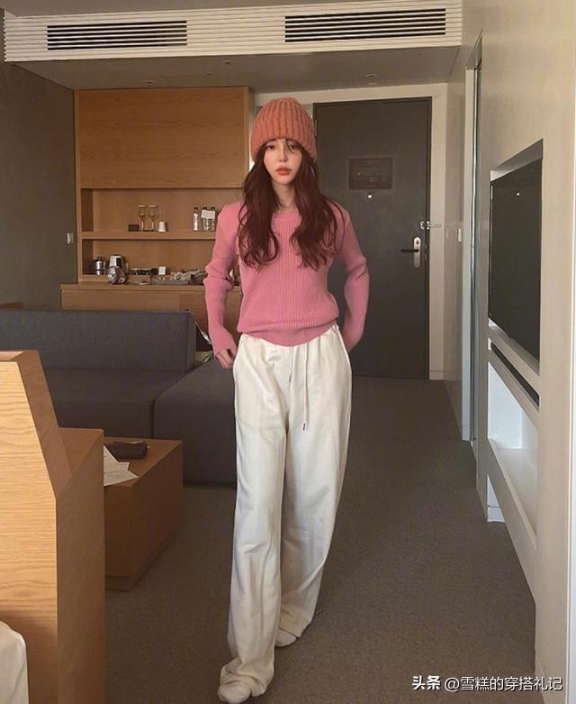 直筒闊腿褲是似闊腿非闊腿,又帶着直筒版型的線條感,所以搭配的上衣也最好有這種感覺,帶來身材整體的協調感會更強。可以學習搭配這種常規版型,看似修身,但是衣服又有充足空間感的舒適上衣,選擇比較親膚的針織衫或者純棉材質的T恤就很OK。